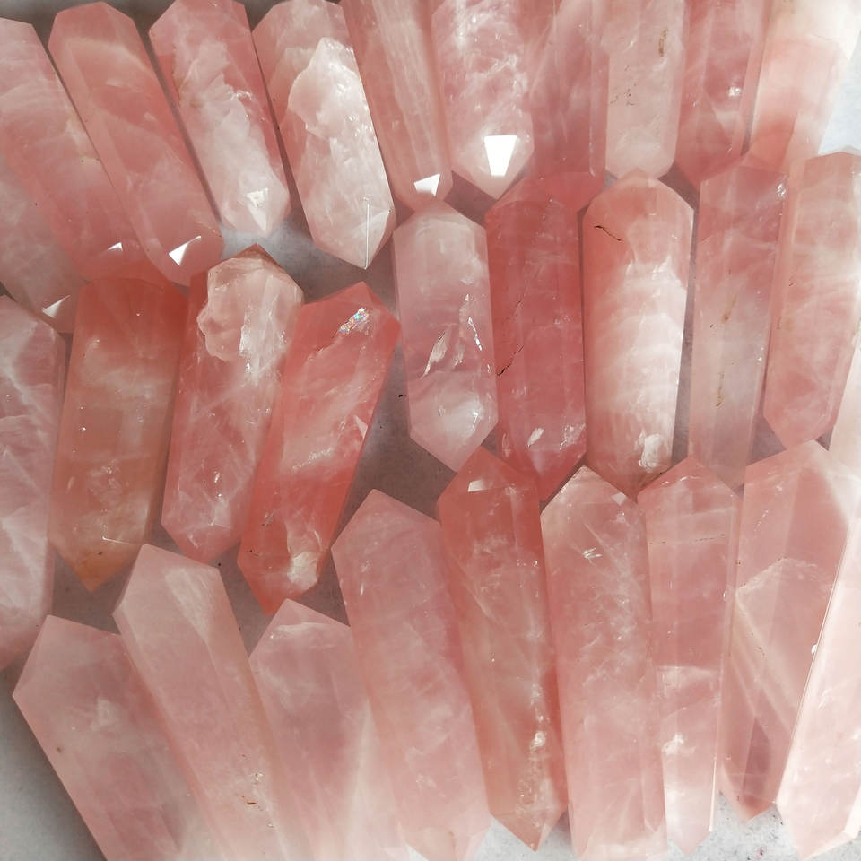 Porte-clés en quartz rose à double pointe, cristal de guérison naturel, pierre de lune pêche, pierre précieuse polie, fournisseur en gros, article cadeau