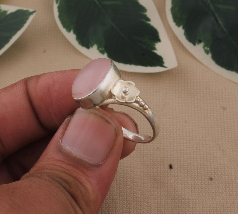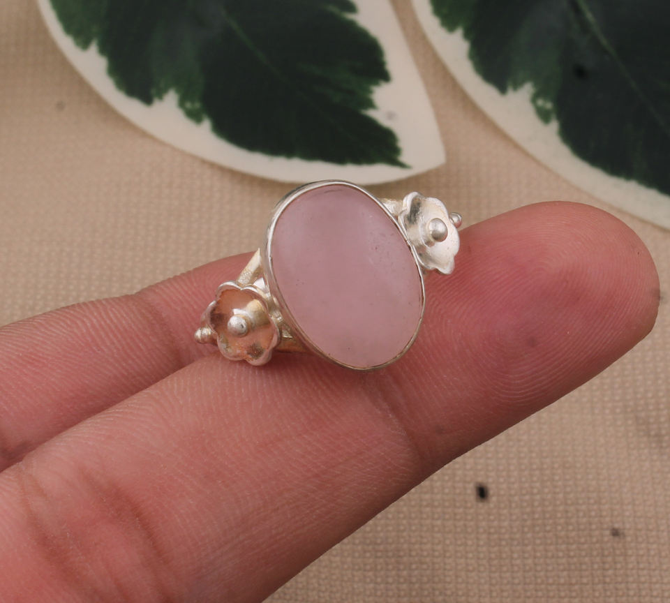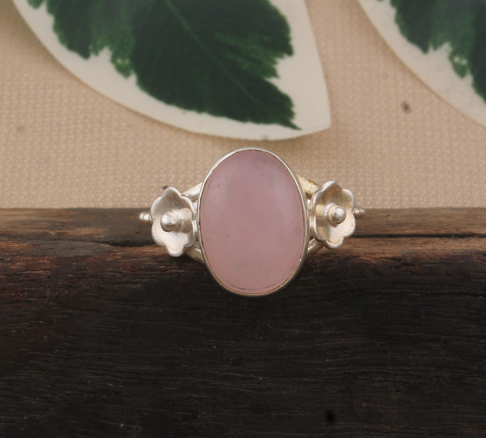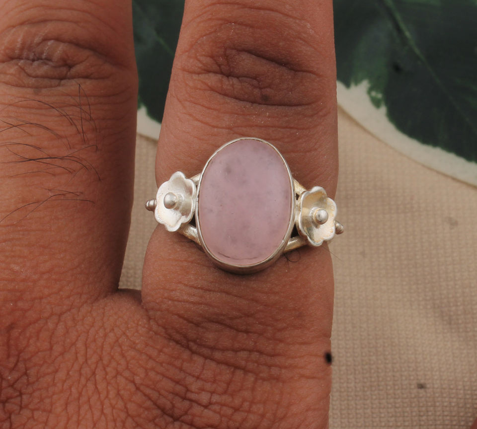 Quartz rose forme ovale bague en Quartz rose bague en argent sterling 925 bague fleur bijoux faits à la main cadeau d'anniversaire