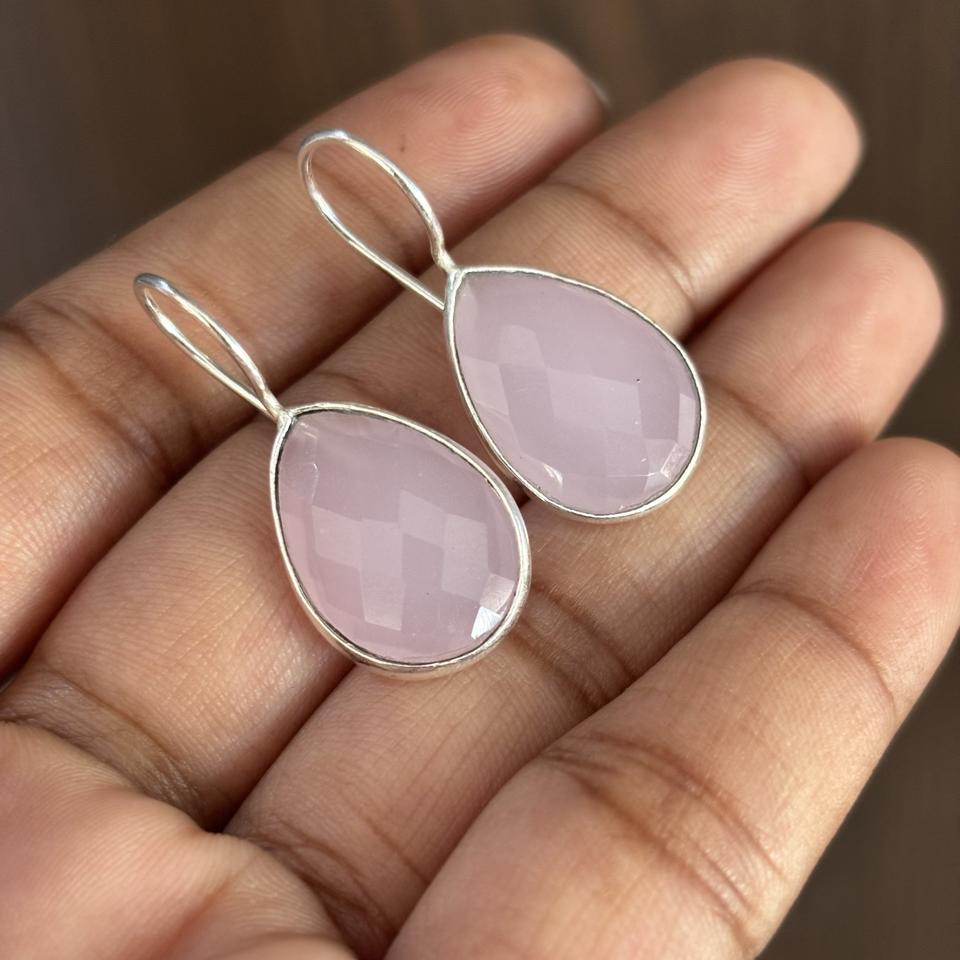 Boucles d'oreilles pendantes en forme de poire en argent sterling 925 avec pierre précieuse en quartz rose, cadeau tendance pour femmes