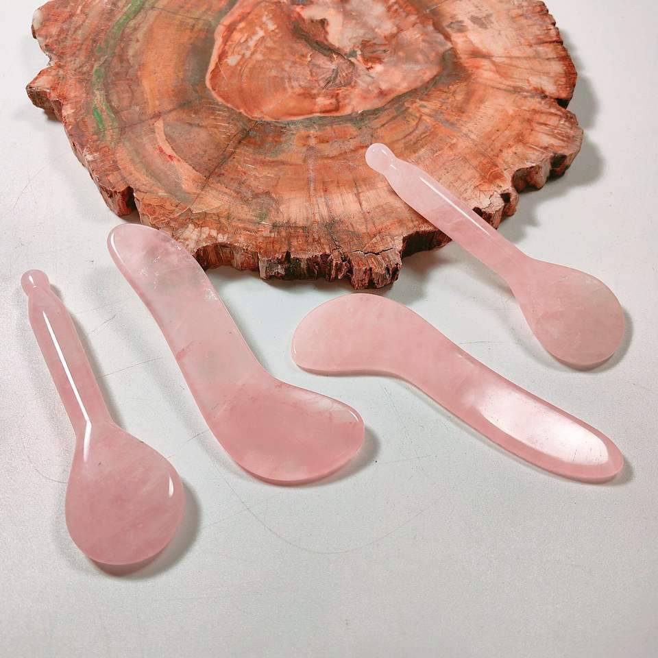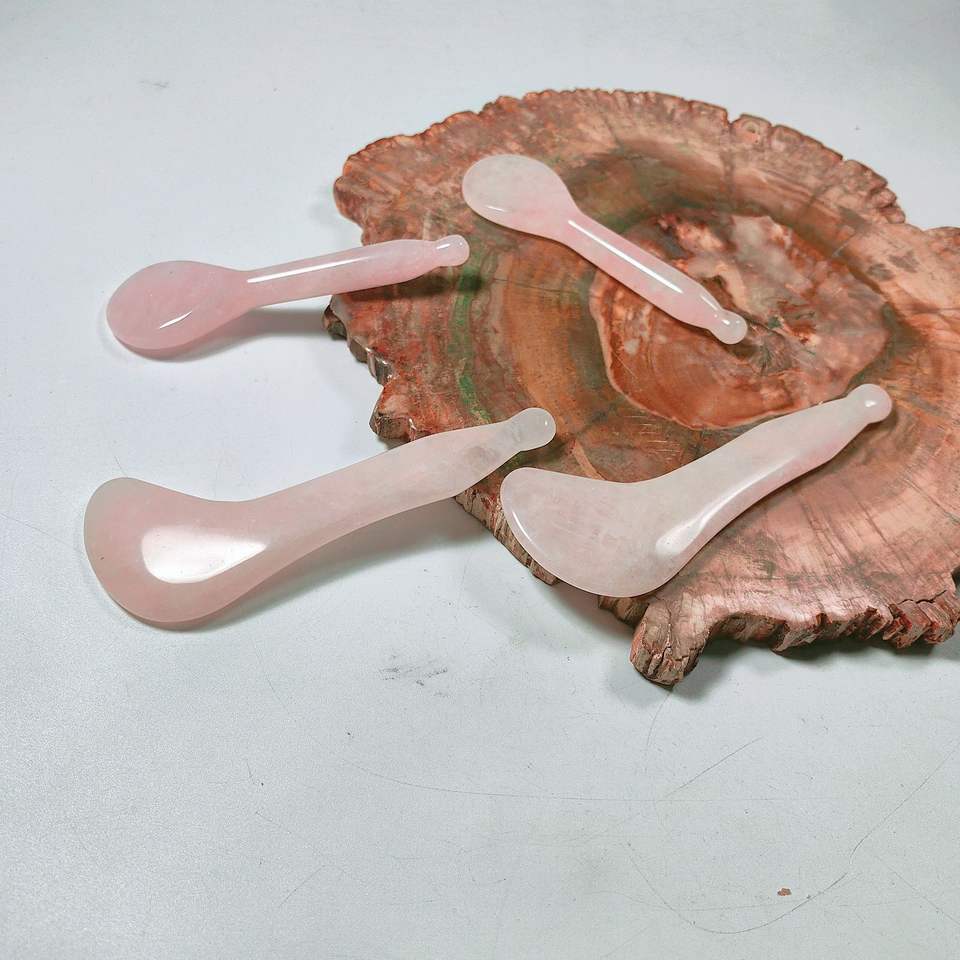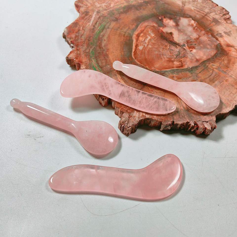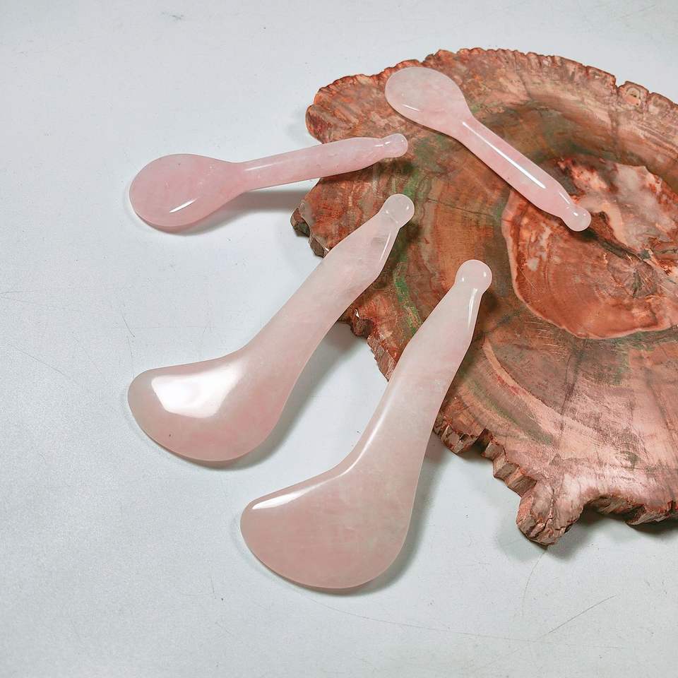 Cuillère en quartz rose, outil de beauté pour le visage, plaque Gua Sha en cristal rose, logo personnalisé, outils de massage facial Guasha