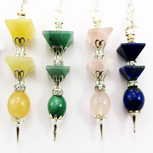 3 Pc Pyramide Balle Pendule Quartz Rose:3 Pc Pyramide Balle Pendule Quartz Rose