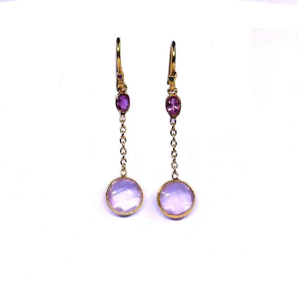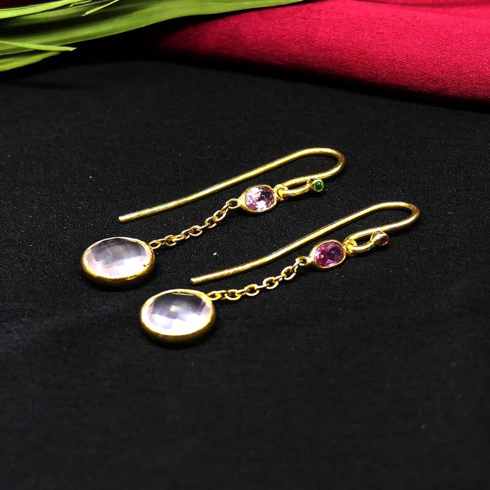 Boucles d'oreilles en tourmaline quartz rose faites à la main en argent sterling 925 style de célébrité ensemble de boucles d'oreilles élégantes classiques