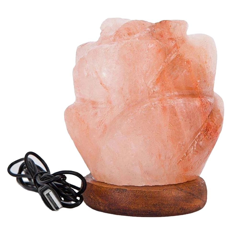 Lampe de sel de l'Himalaya sculptée en forme de fleur, écologique, base en bois, cordon électrique - Couleur et taille personnalisables, naturelle, nuit, OME