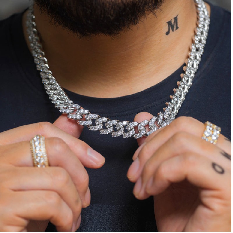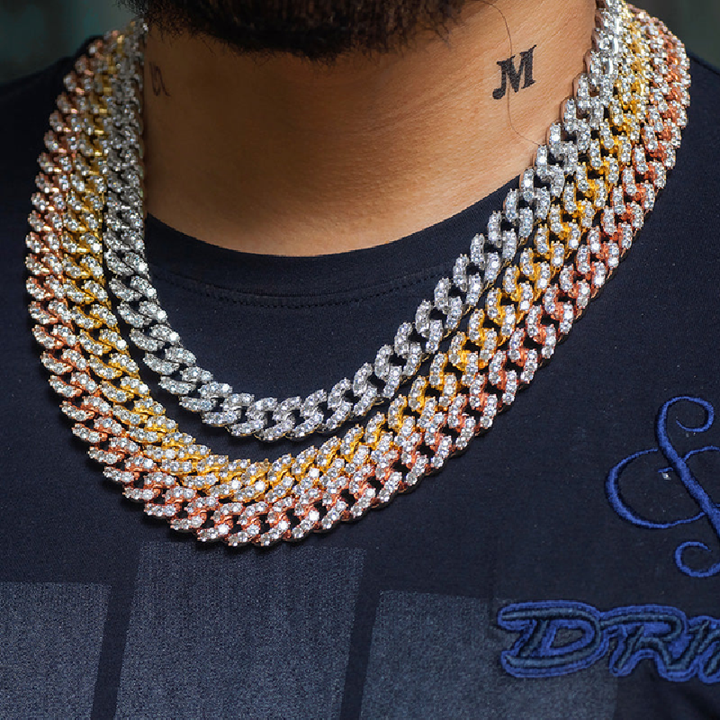 Collier chaîne cubaine en or blanc et or jaune, serti de diamants VVS de laboratoire certifiés IGI, style hip-hop, bijoux de luxe unisexe