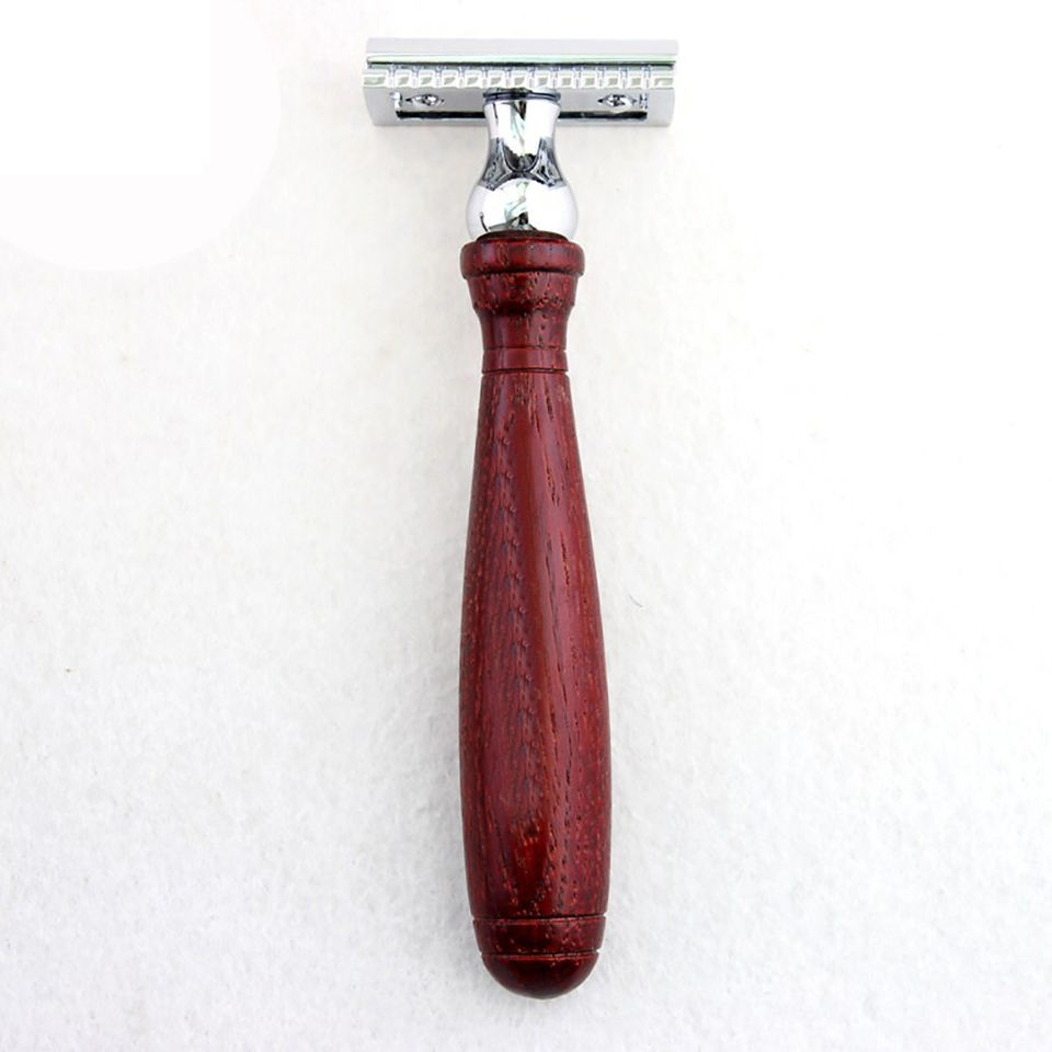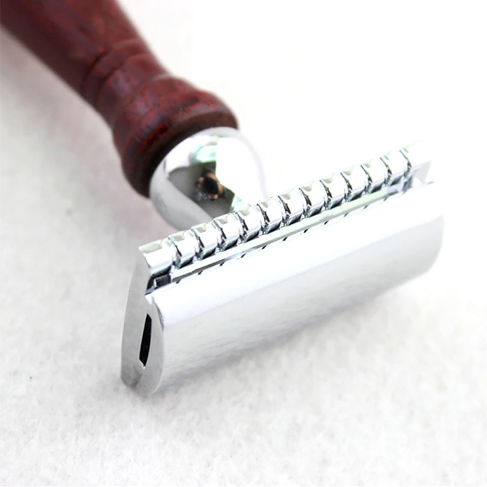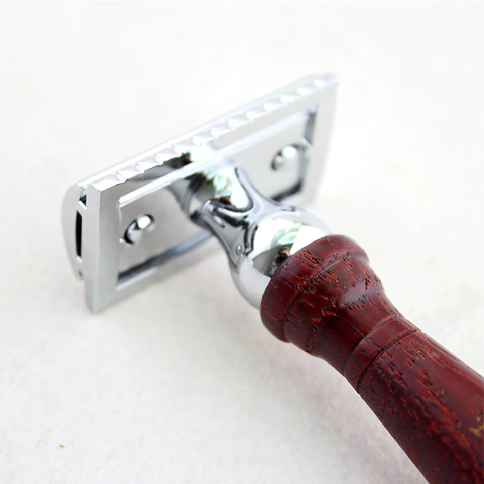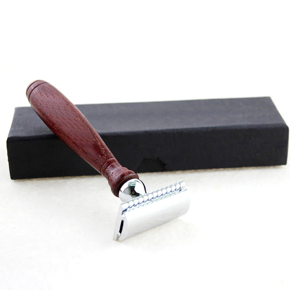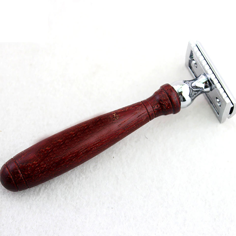 Rasoir classique à double tranchant avec manche en bois de rose, pour le rasage des hommes et l'épilation des femmes, lame de rasoir