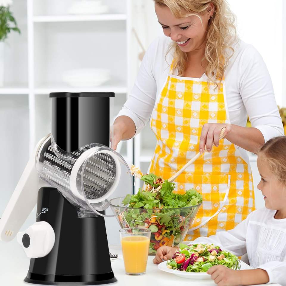 Rotary Cheese Grater Kitchen Shredder Non-slip Suction Base Vegetable Slicer Manual Grinder with Handle and Drum Blades