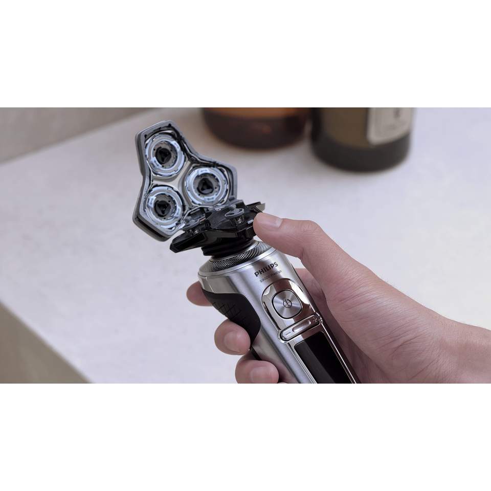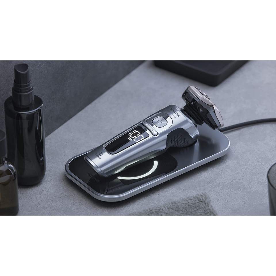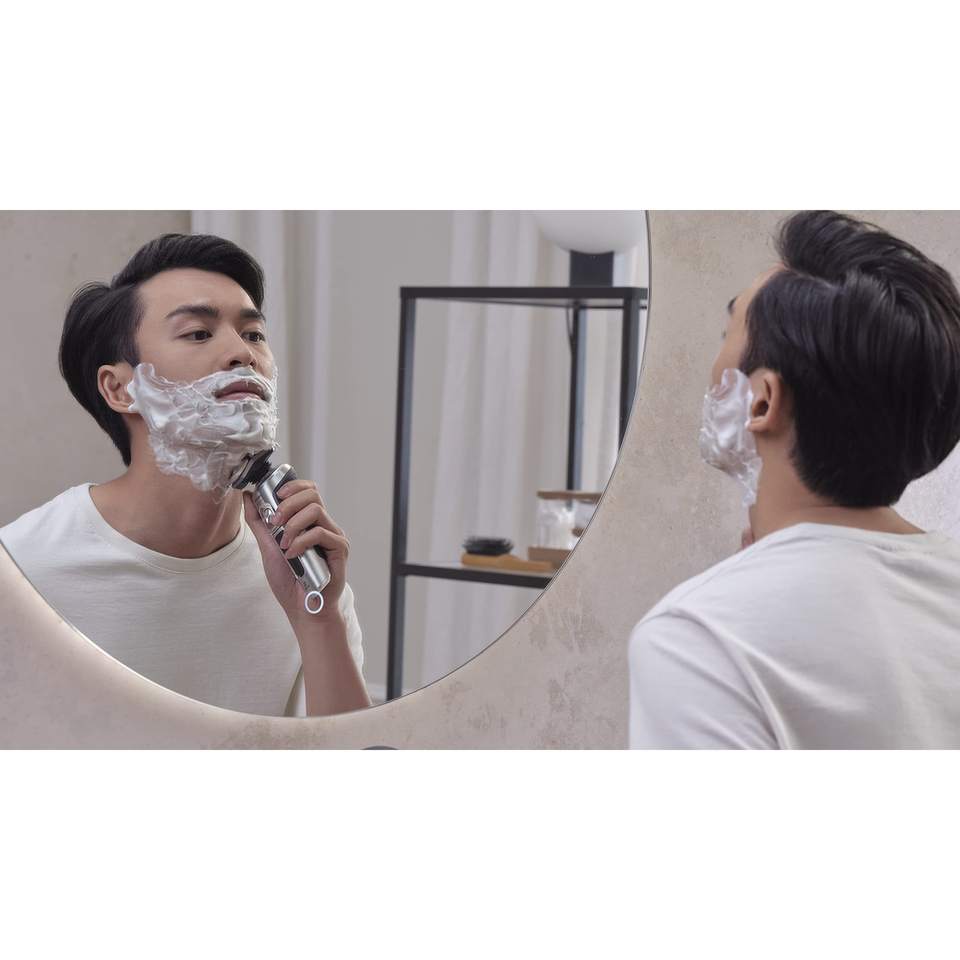 Rasoir Électrique Rotatif Advand, Système de Rasage, Finition Chromée, Support de Charge Sans Fil, IPX7, Tondeuse à Barbe, Tondeuse à Poils de Nez pour le Corps