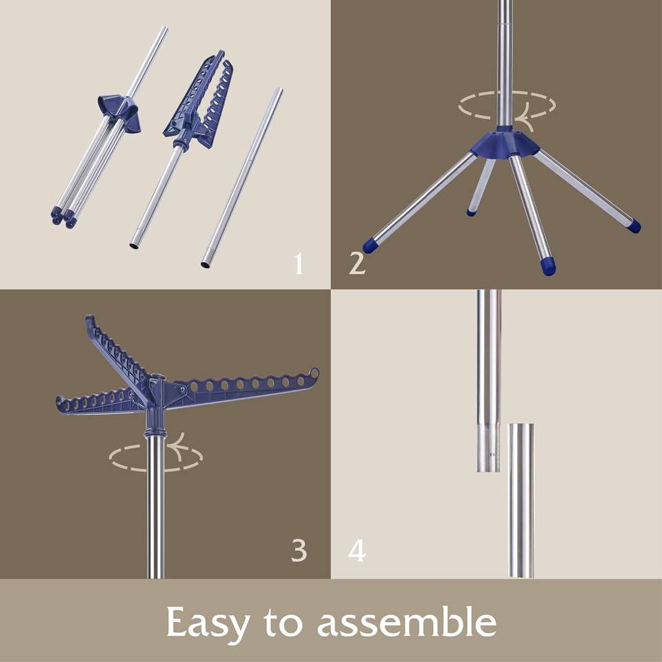 Séchoir à linge rotatif et pliable en acier inoxydable avec bras pivotants, support autoportant