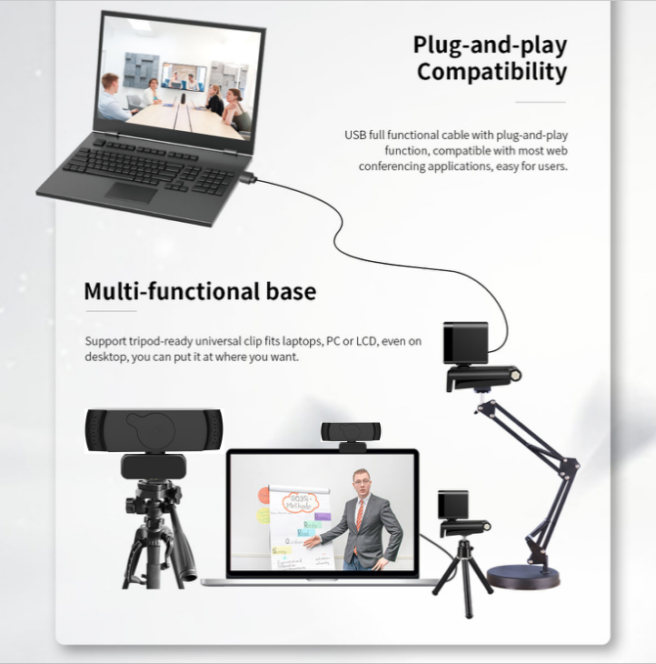 Caméra Web UHD rotative 1080P, caméra Web pour ordinateur PC, 30FPS 1080P, webcam USB2.0 pour ordinateur PC, vidéoconférence, école