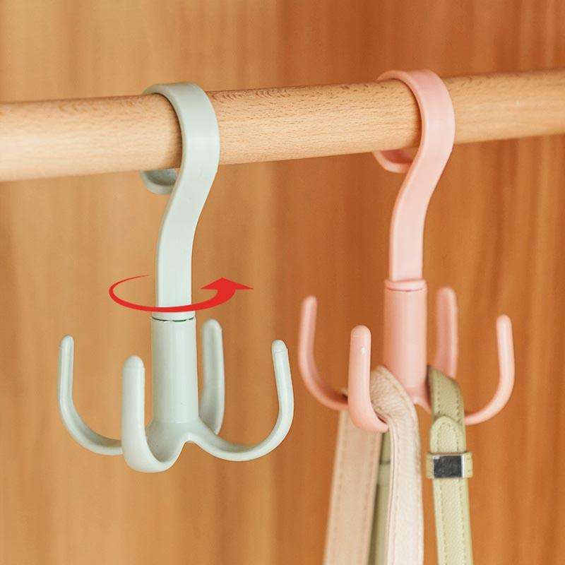Cintre de ceinture rotatif 360 degrés organisateur rotatif avec 4 crochets pour sécher les serviettes soutiens-gorge gants en plastique linge chaussette séchage Han