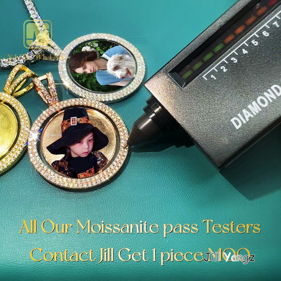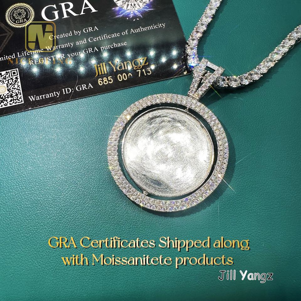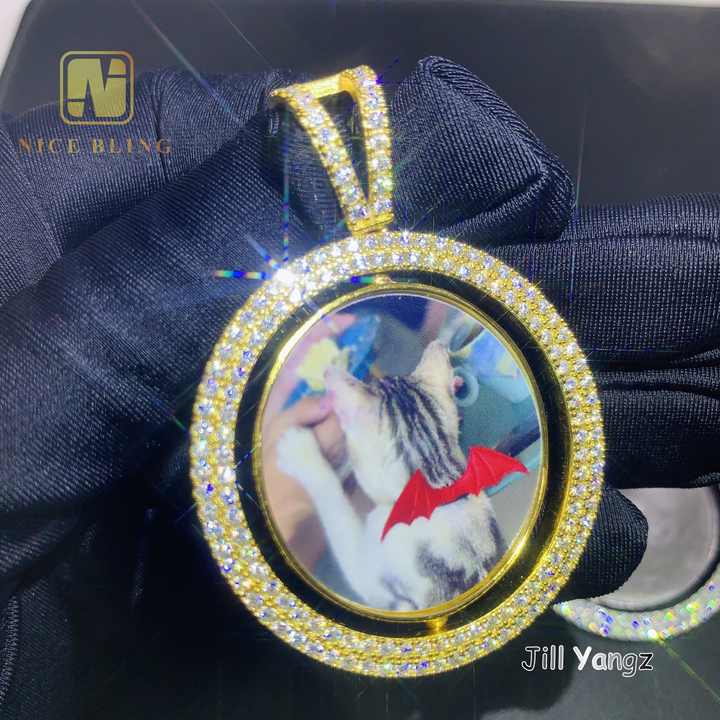Pendentif photo rotatif double face en moissanite, argent 925, hip hop rock, cadres photo glacés, cadeau de Noël pour femmes et hommes