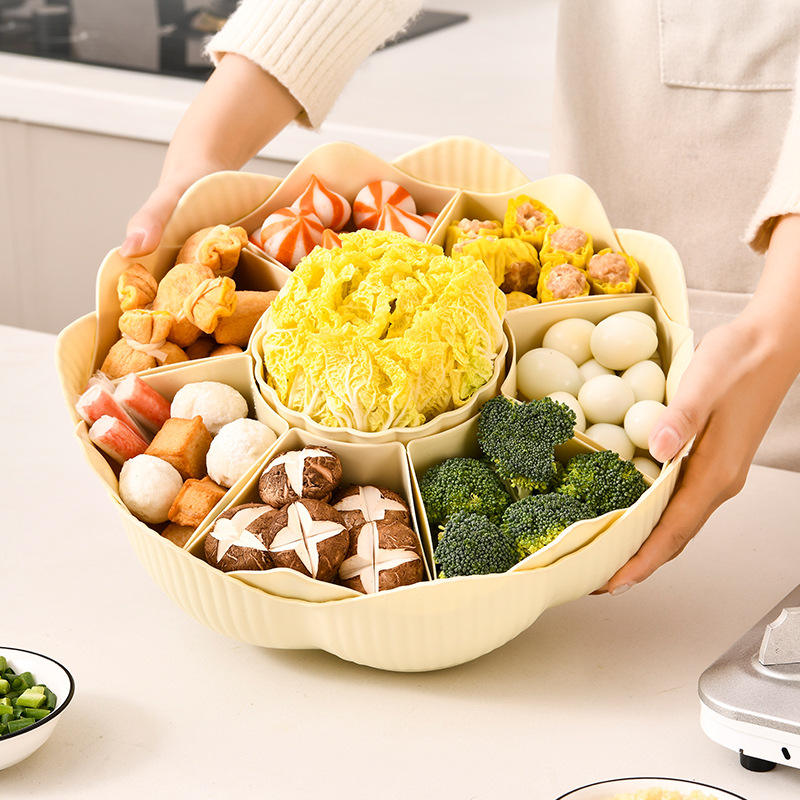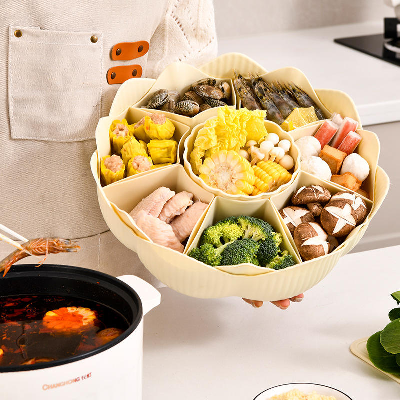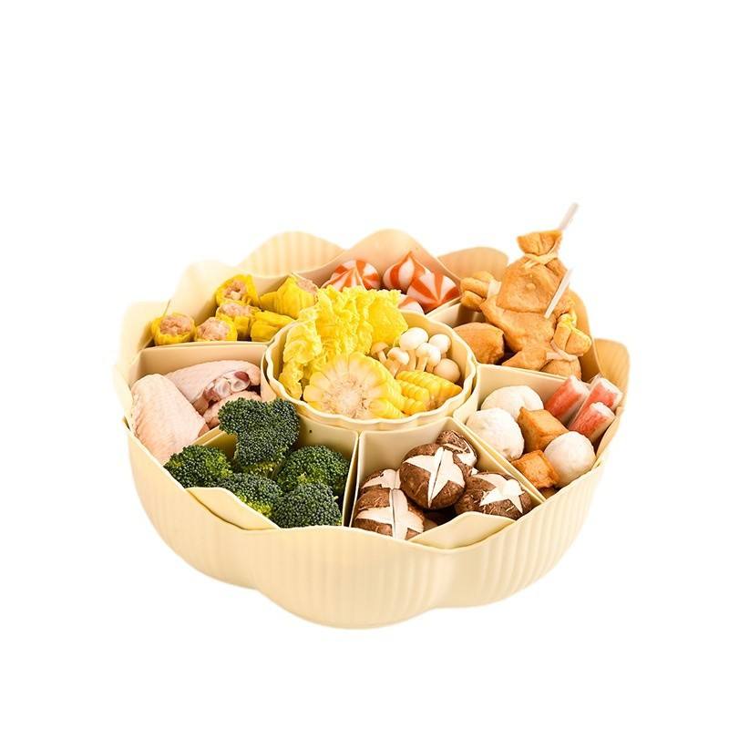 Rotating Hot Pot Plate 8 Compartment Double Layer Serving Tray Creamy Transparent Dishwasher Safe Kitchen Food Platter