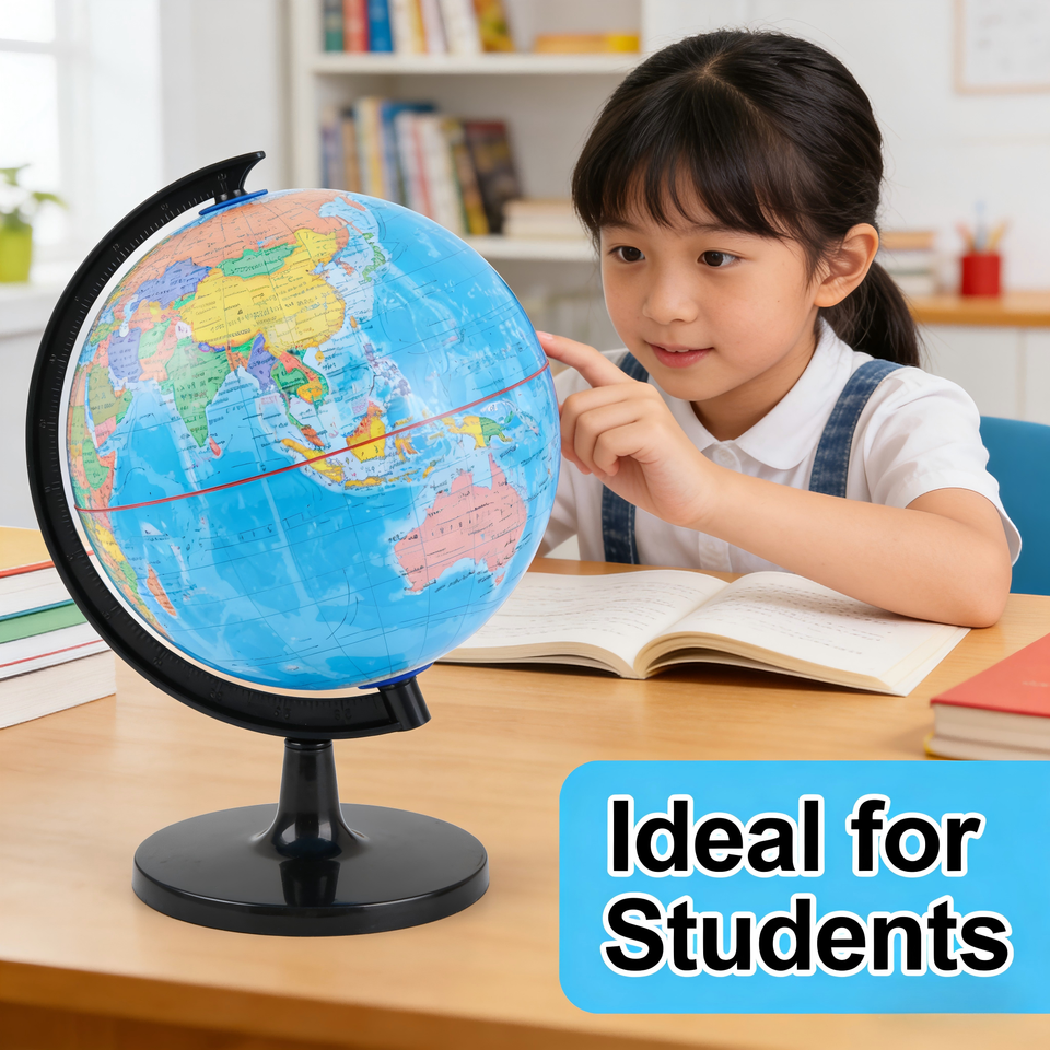 Globe rotatif en plastique 20 cm pour étudiants, outil pédagogique de classe, ornements haute définition, bleu classique ZKJ