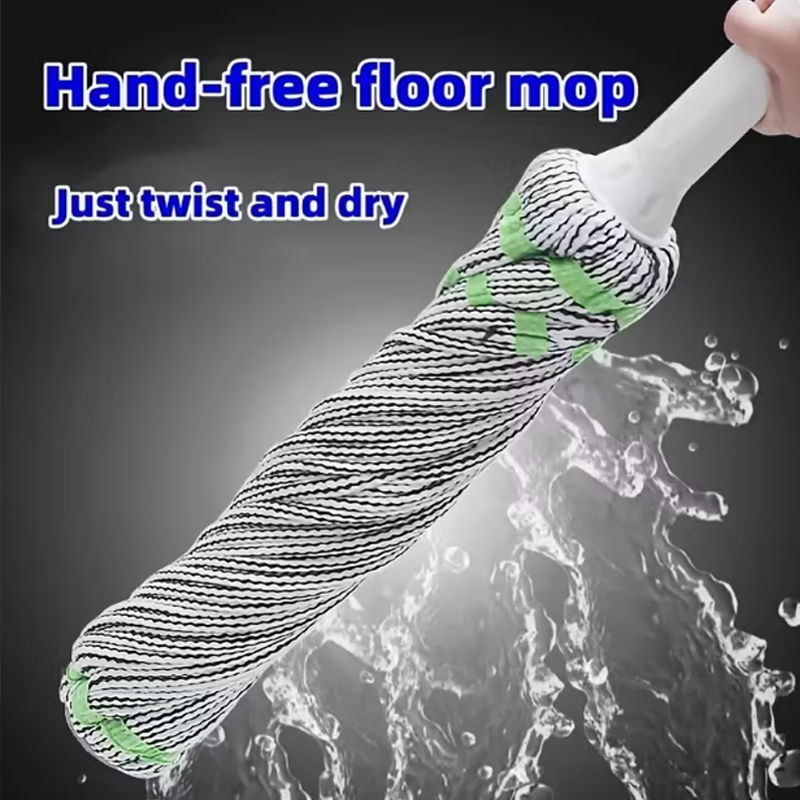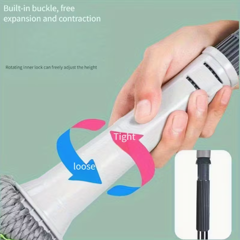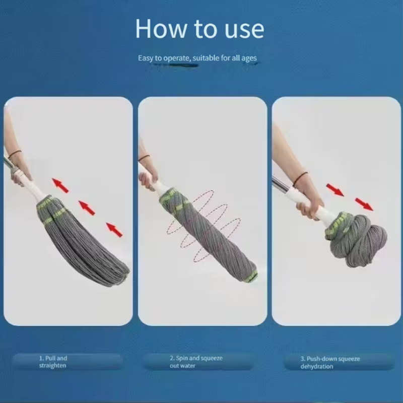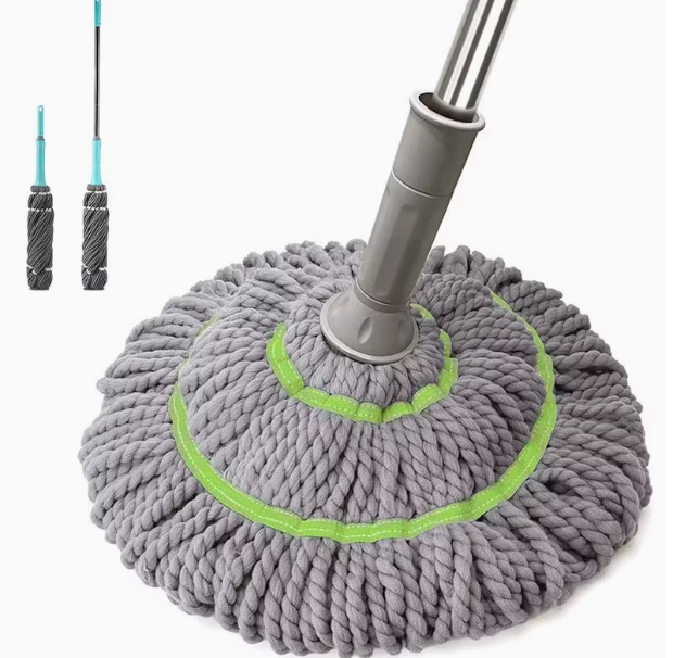 Balai rotatif à tête en fil de coton avec manche télescopique en métal et essoreur manuel pour le nettoyage des sols du salon
