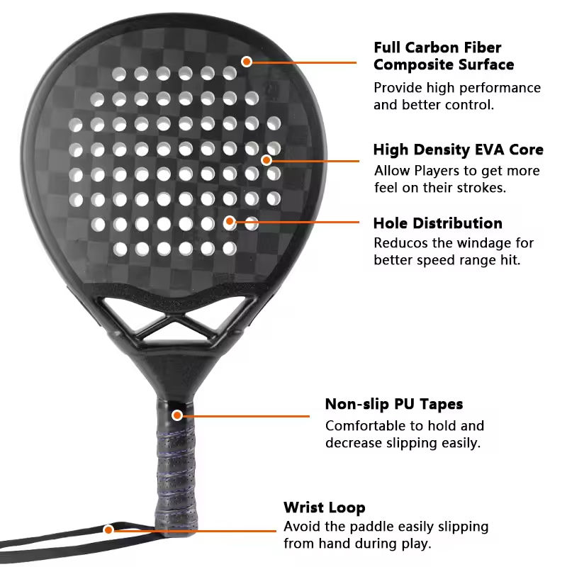 Raquettes de padel en polyester diamanté mat à surface rugueuse, haute résistance, légères, en EVA, pour le drop shot