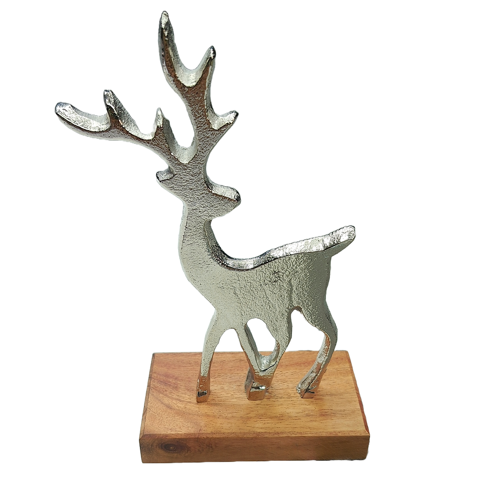 Ornement de renne en métal texturé rugueux avec base en bois maison améliorant le décor de table de Noël