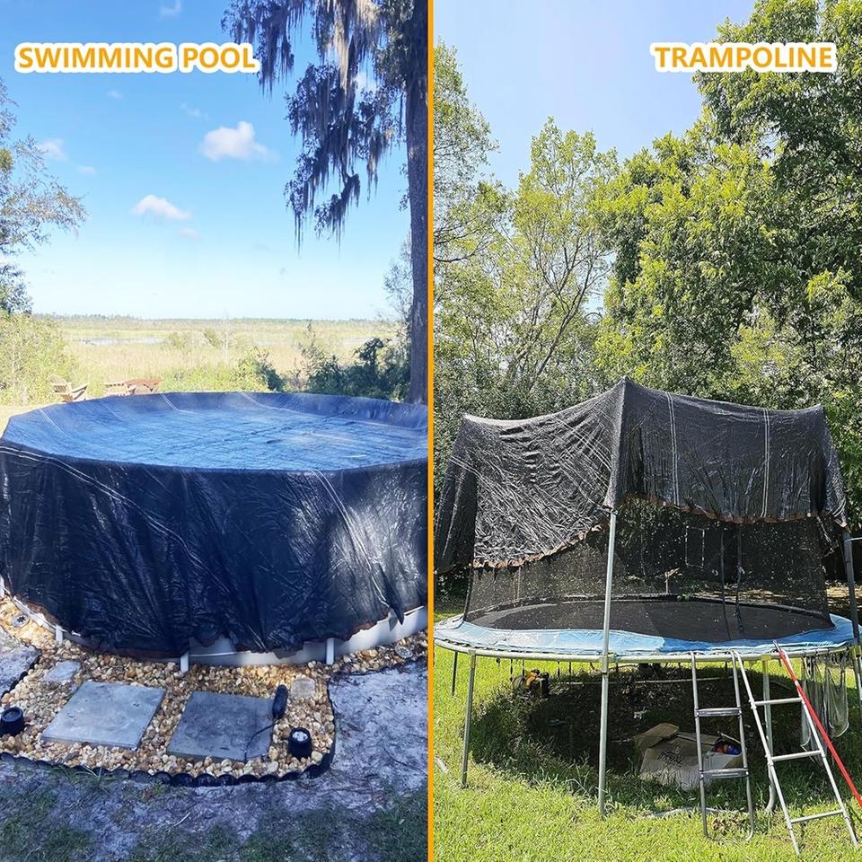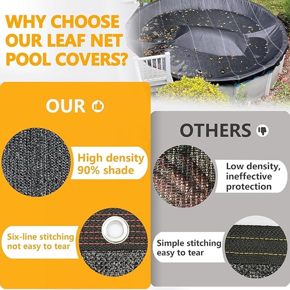 Couverture de piscine hors sol ronde en filet pour l'hiver, bâche de piscine en maille avec œillets et cordes, couverture en maille noire pour attraper les feuilles