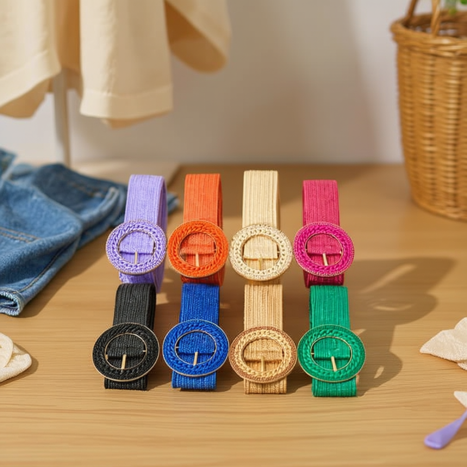 Ceinture en cuir de paille PP avec boucle de chaîne à perles rondes de 5CM