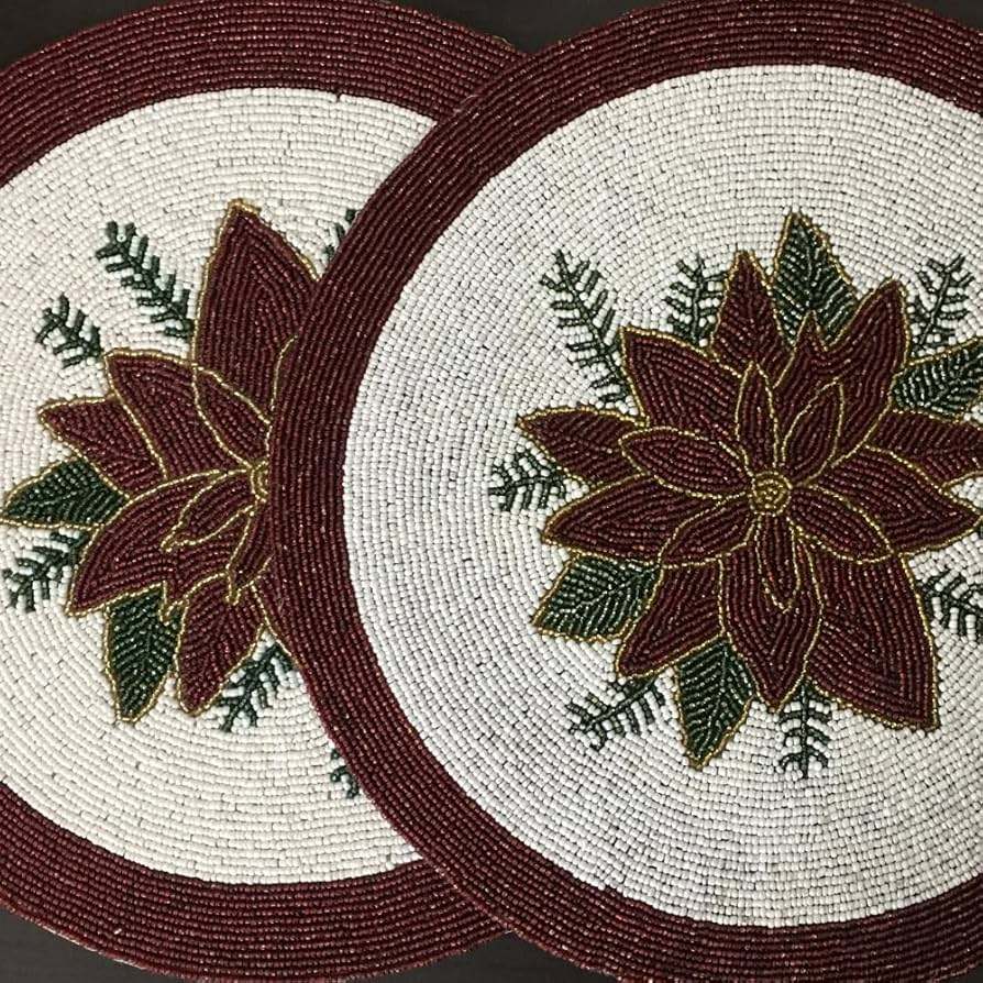 Set de table rond vintage en broderie perlée, écologique, solide, pour restaurant, vente en gros, artisanal, durable, de bonne qualité, personnalisable