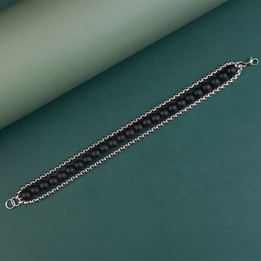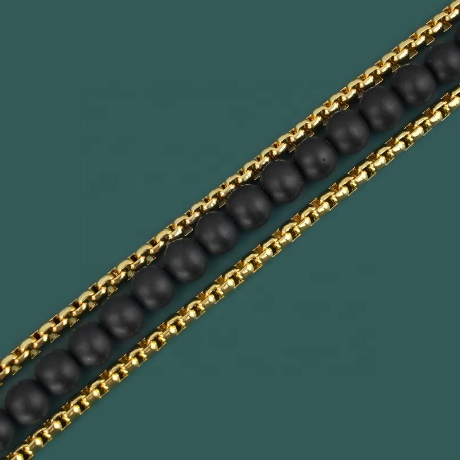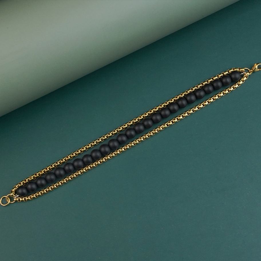 Bracelets à maillons ronds pour hommes, breloques en onyx mat, accessoires en acier inoxydable doré, bijoux de mode