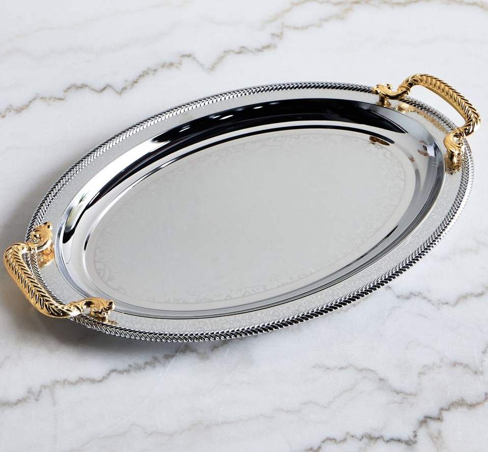 Plateau rond en laiton, plateau de service carré, plat ovale en laiton, plateau circulaire en laiton, plateau décoratif rond, plateau à thé rond