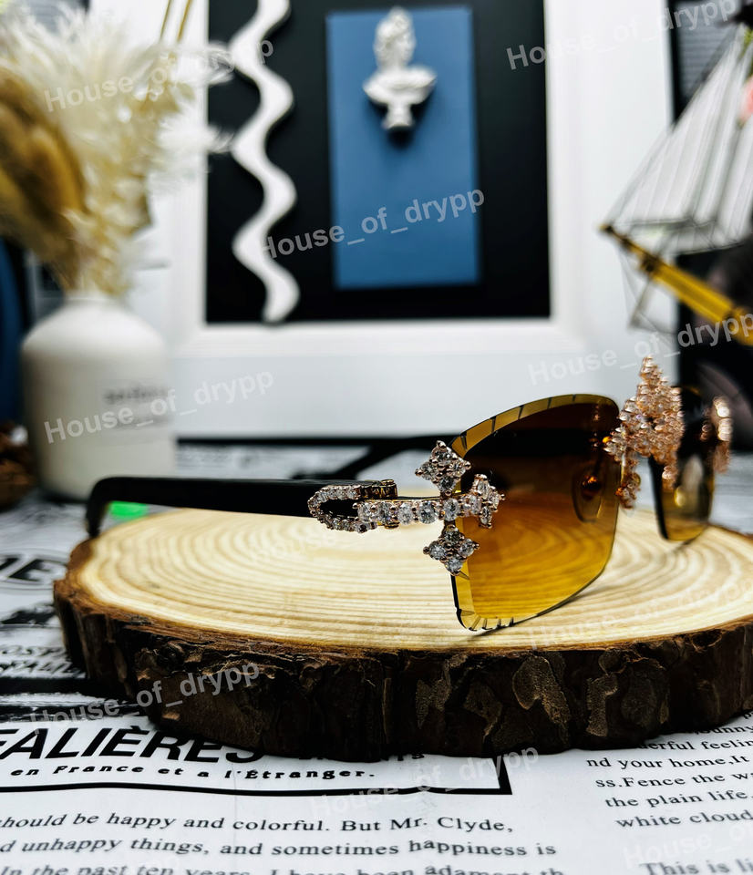 Lunettes de soleil photochromiques de luxe Hip Hop sans monture, serties de moissanite taille brillant rond, pour la mode.