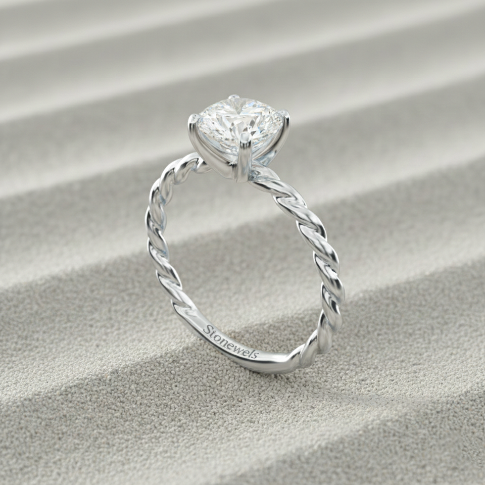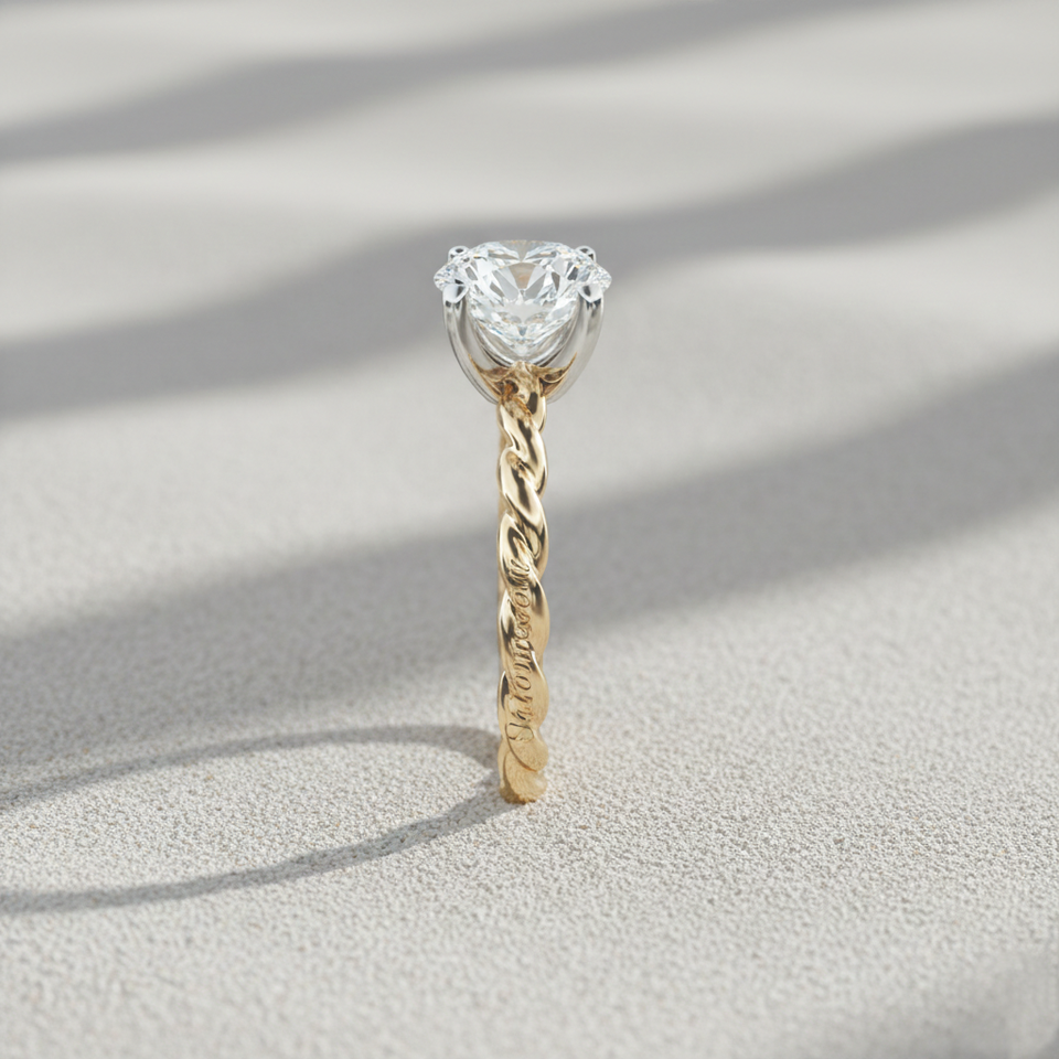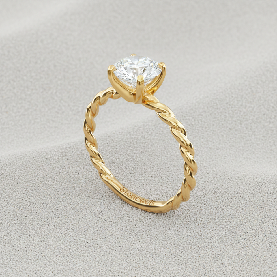 Bague de fiançailles solitaire à câble rond en or massif | Diamant cultivé en laboratoire