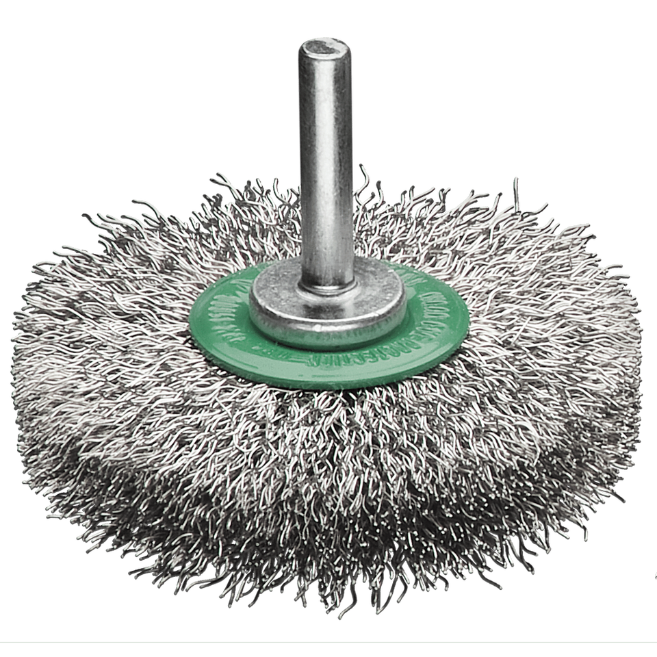 Round Car Wash Brushes Stainless Steel Wire Wavy 0.20 mm Bristle Height 25 mm for SRB 6 X 20 mm Shaft Diameter 100 X 14 mm