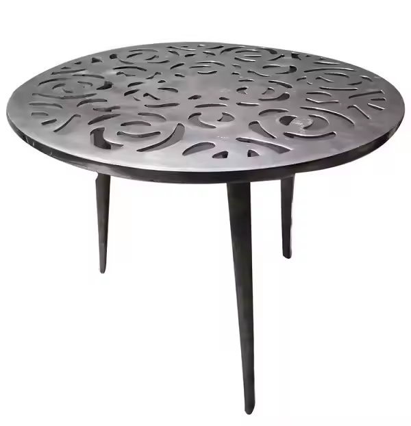 Table basse ronde en aluminium moulé avec trou pour parasol, noire, écologique, durable, mobilier de salon, best-seller Azora Industries