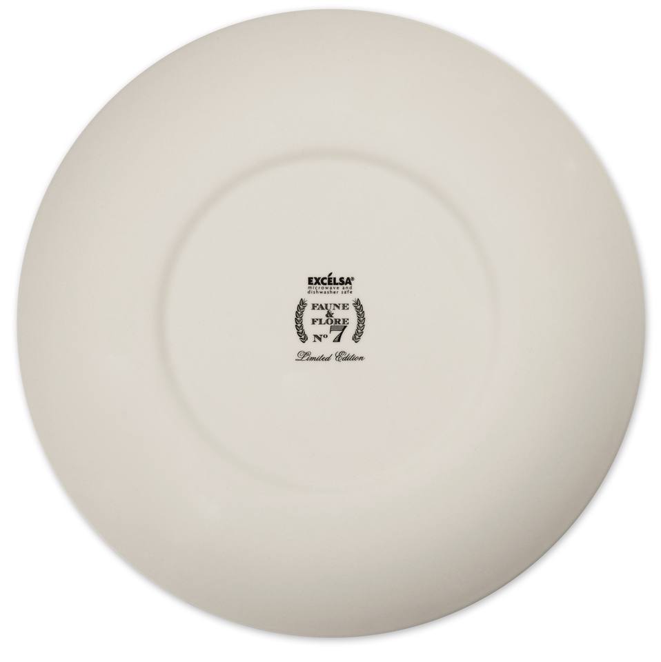Ensemble de vaisselle en céramique ronde de 3 pièces, assiettes Faune & Flore par Excelsa, technique de tampographie, design faune montagneuse