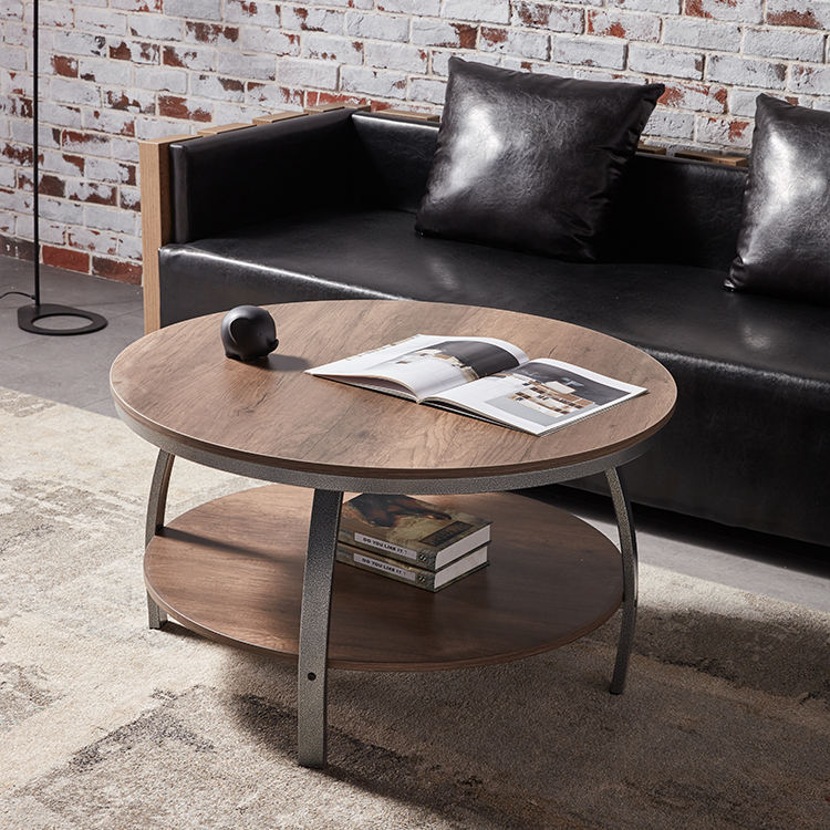 Meubles de table basse ronde pour étagère de rangement de salon dessus de table en bois ouvert avec stock en amérique supportant DDP