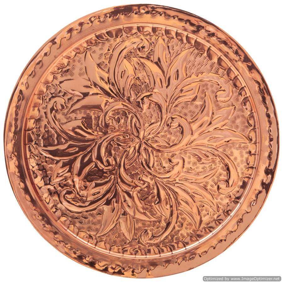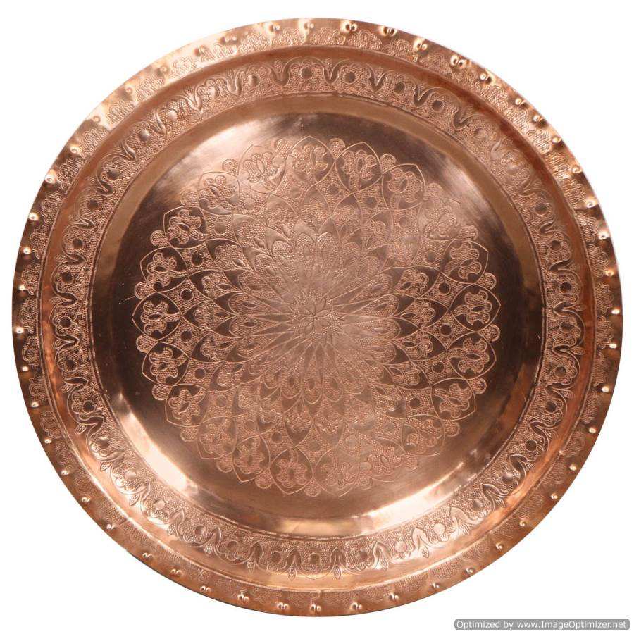 Plateau rond en cuivre avec poignée en laiton Nouveau design Décoration Fantaisie Luxe Meilleure qualité Poignée en laiton Plateau Ustensiles de table