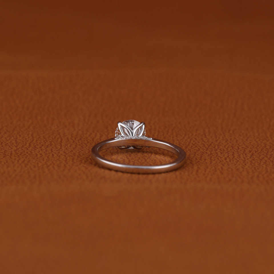 Bague de fiançailles en plaqué or massif 18KT, taille ronde, bague d'anniversaire certifiée IGI de luxe, style classique, cultivée en laboratoire.