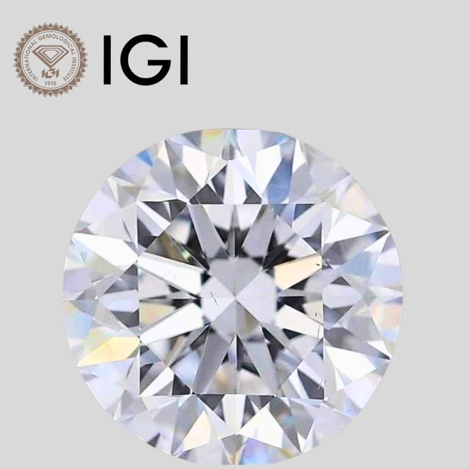 Diamant de laboratoire de 2,05 carats, taille ronde, couleur E, pureté VVS2, certifié IGI