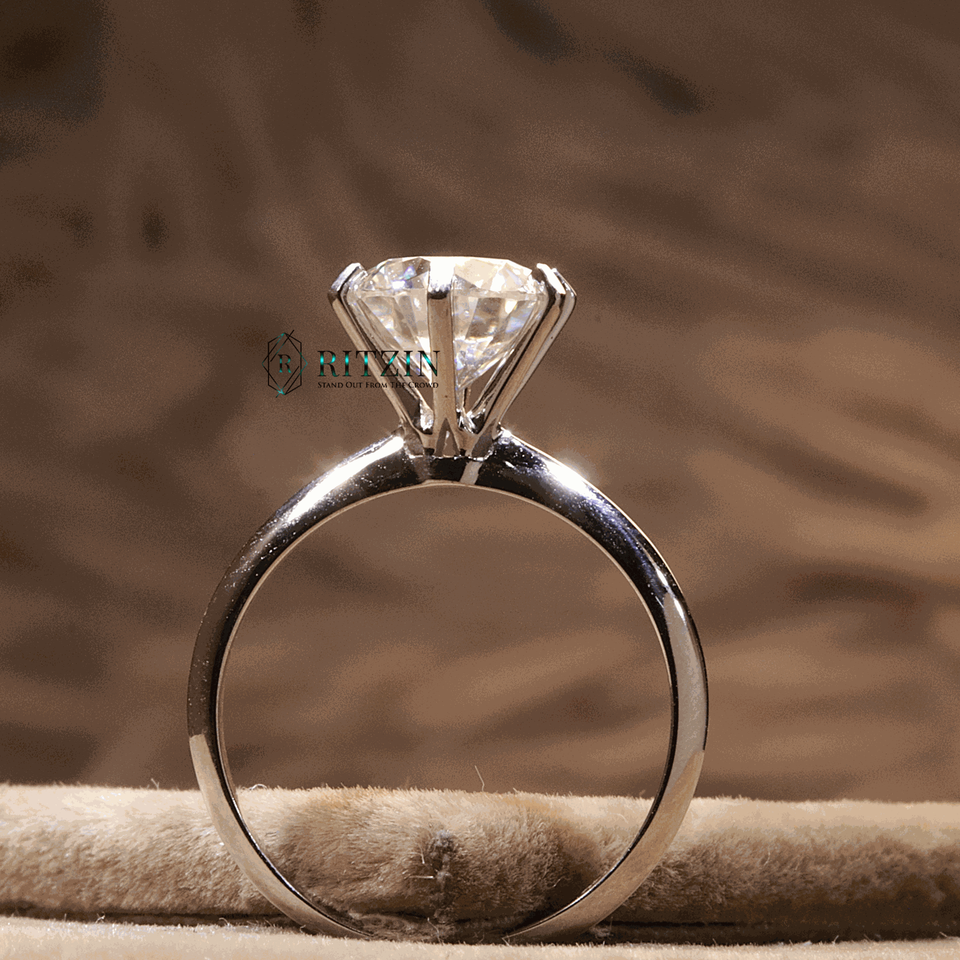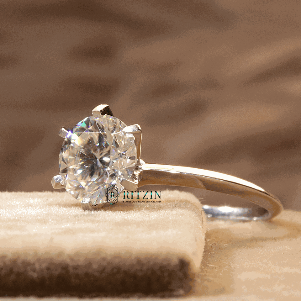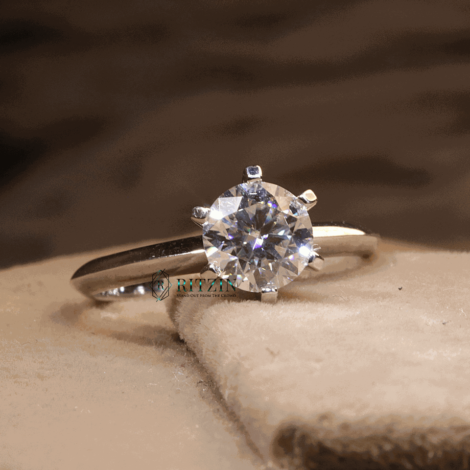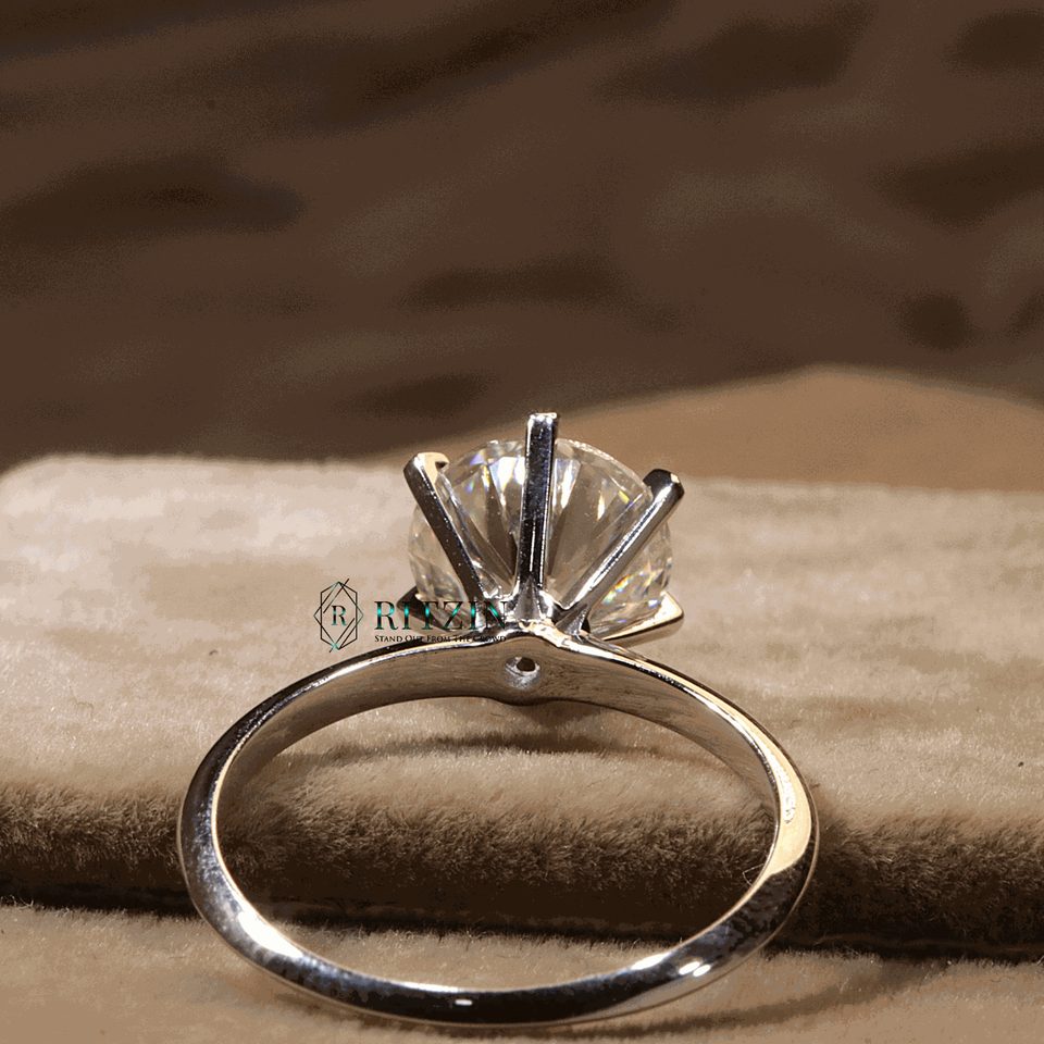 Bague de fiançailles de style solitaire à 6 griffes en diamant rond pour elle/femme