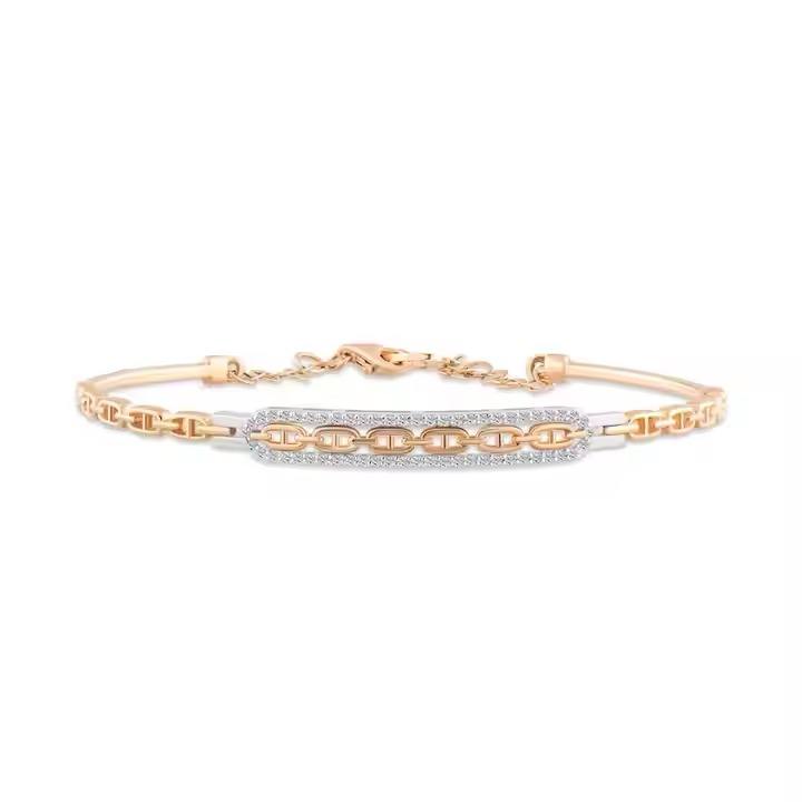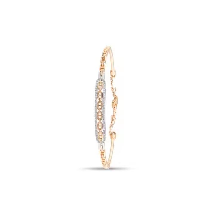 Round Cut Diamond Bracelet Tennis Classic Simple Unique Design Real Diamond Studded Bangle Bracelet in 18K Yellow Gold