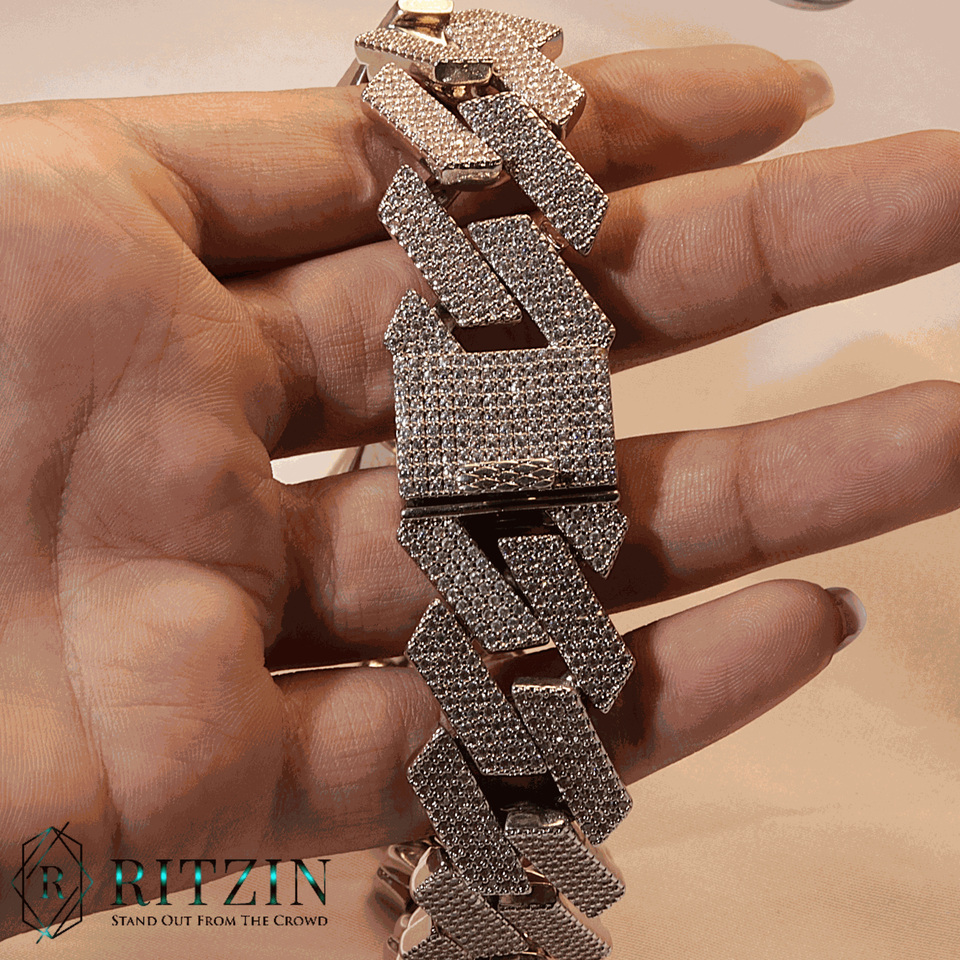 Bracelet Cubain Diamant Coupe Ronde Pour Homme