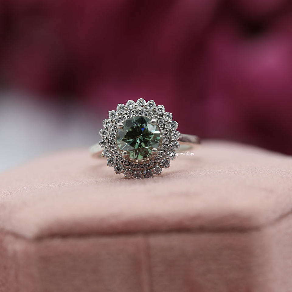 Diamant rond taillé en laboratoire Double Halo serti de luxe bague de fiançailles en argent sterling bague cadeau pour femme IGI