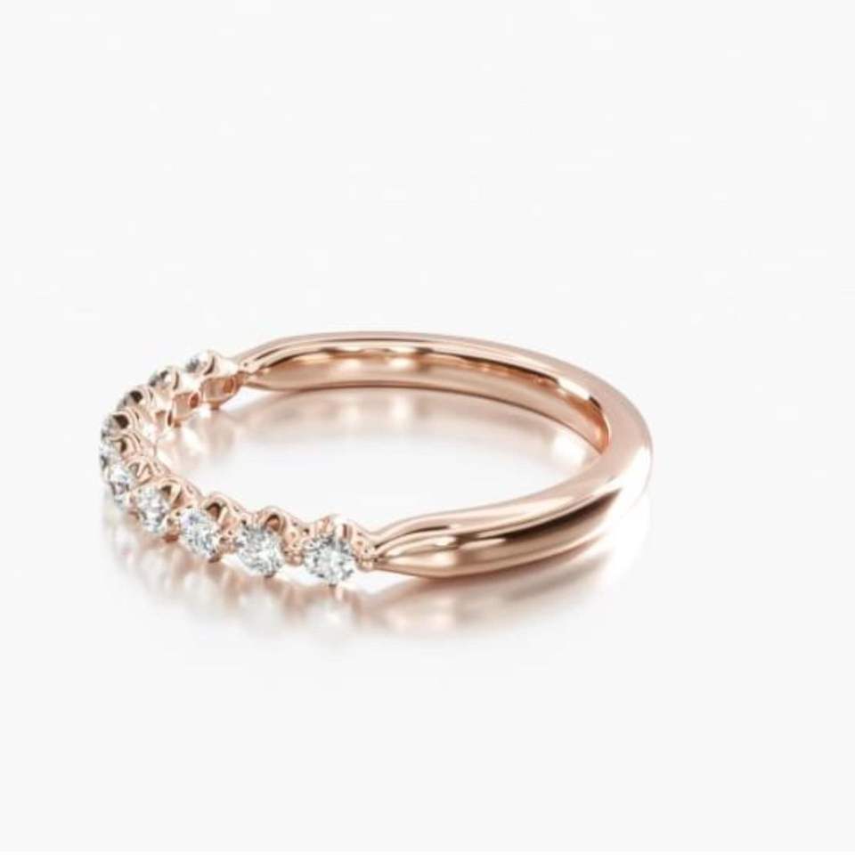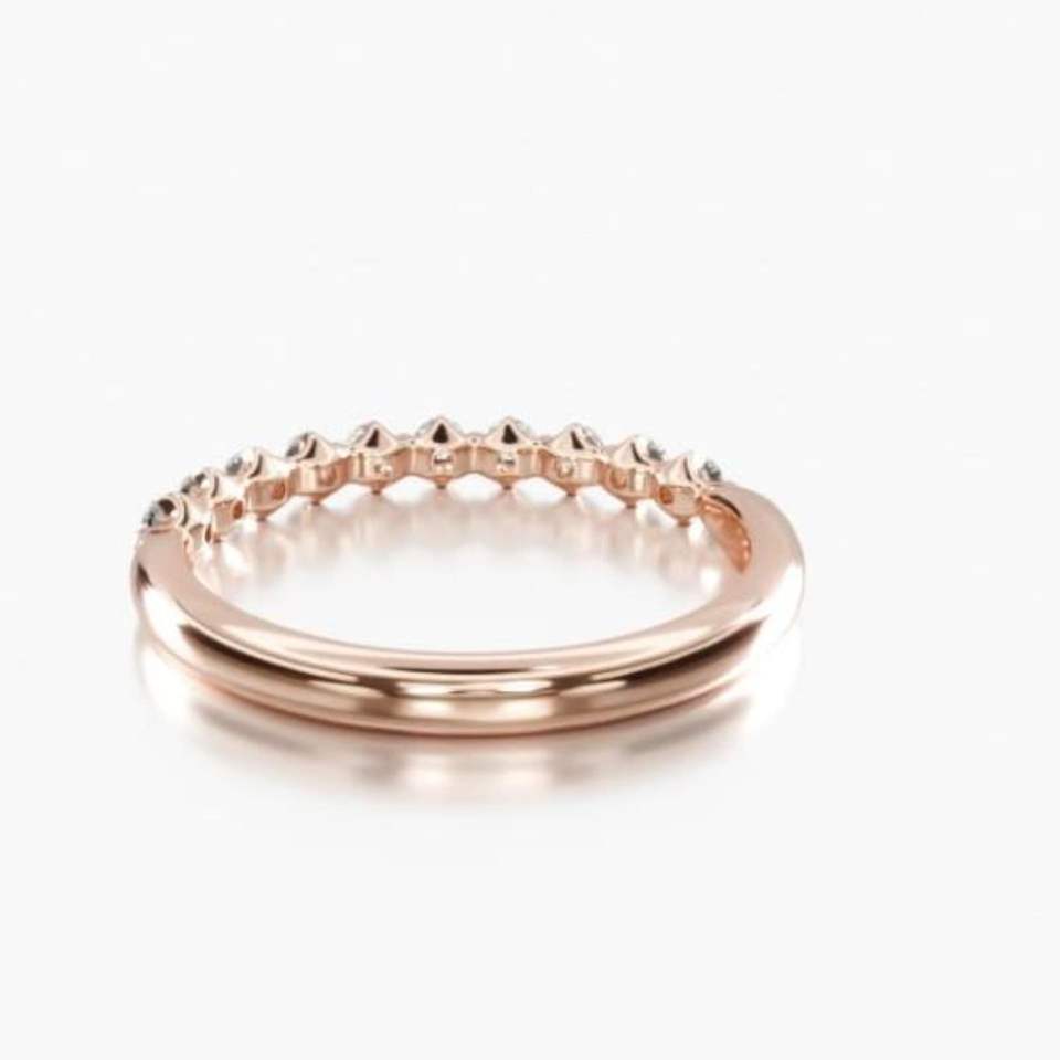 Alliance de mariage demi-éternité en diamant de laboratoire taille ronde pour femme en or rose 14 carats, style mignon