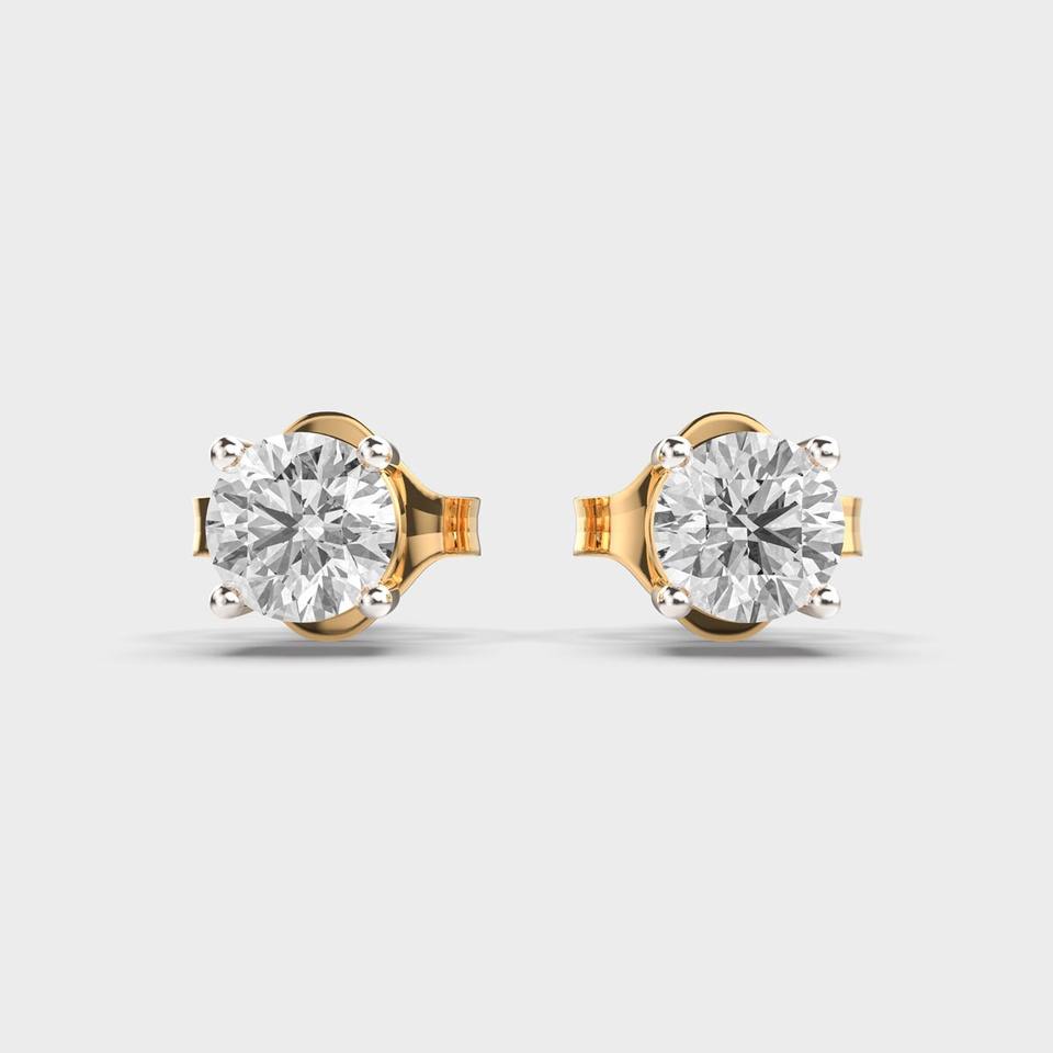 Boucles d'oreilles clous en diamant de laboratoire taille ronde en or blanc/rose/jaune 14 carats, solitaire à 4 griffes avec fermoir à vis
