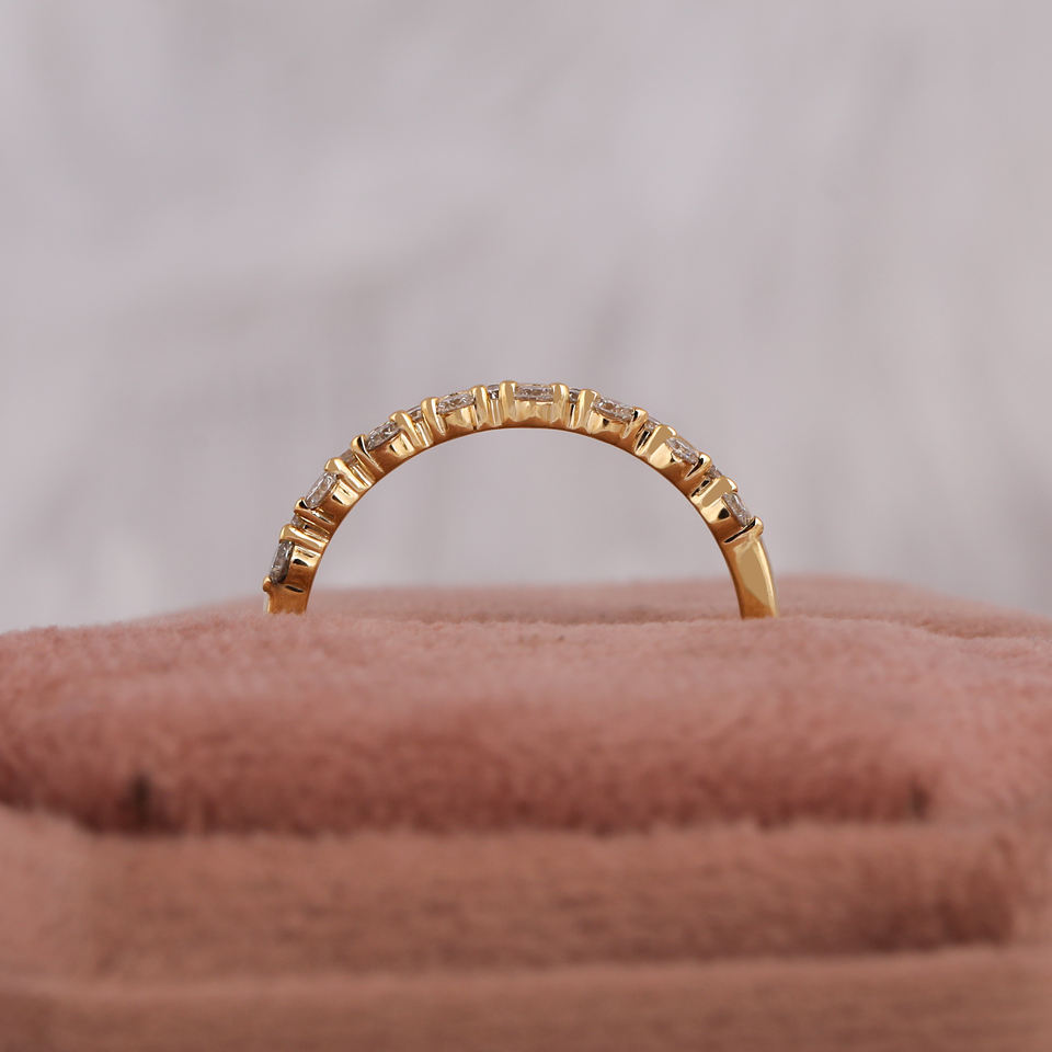 Alliance en or jaune 14 ct certifiée avec diamants classiques de laboratoire à sept coupes, plaqué or rose, cadeau d'anniversaire pour filles