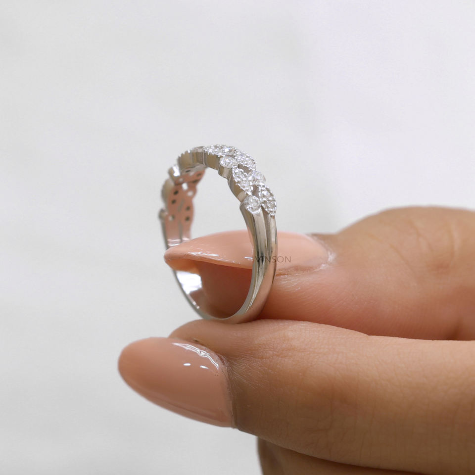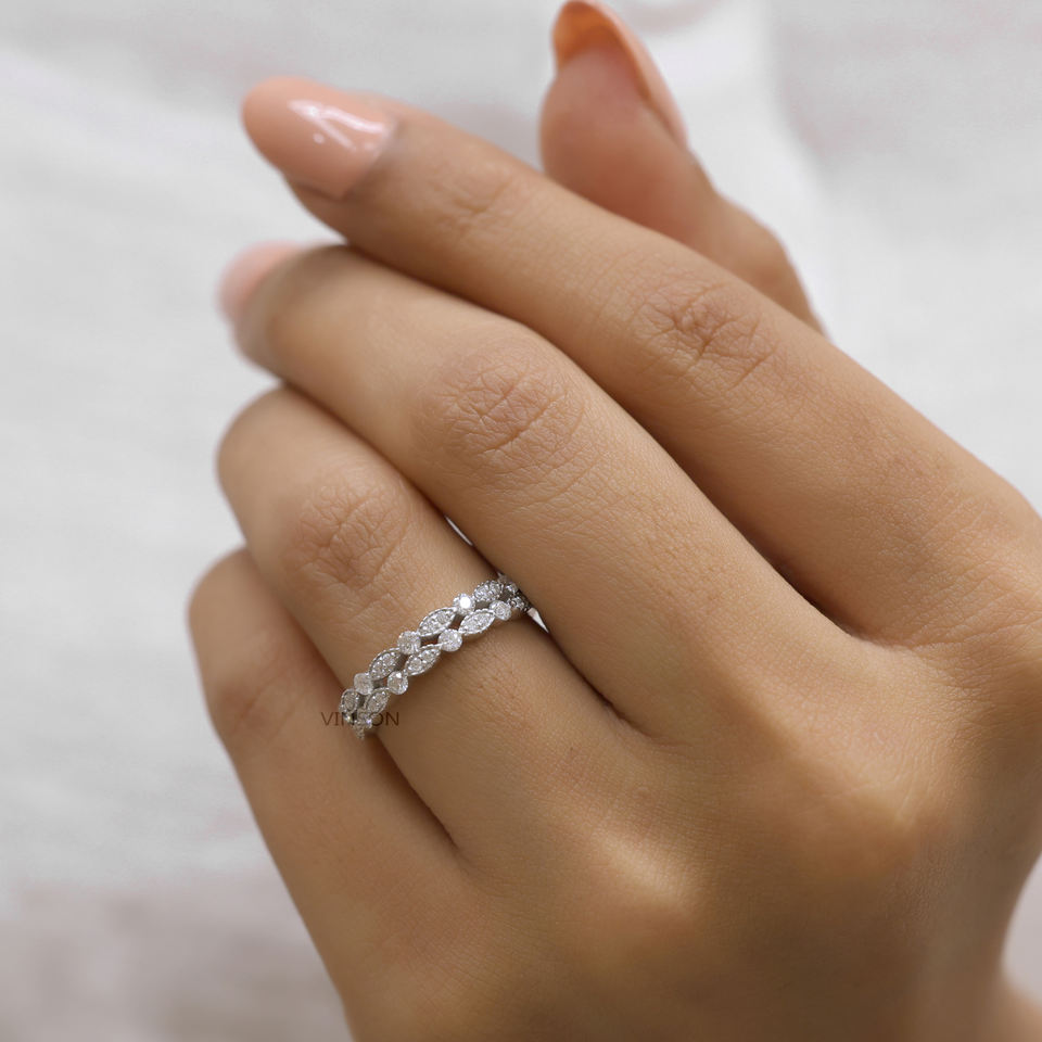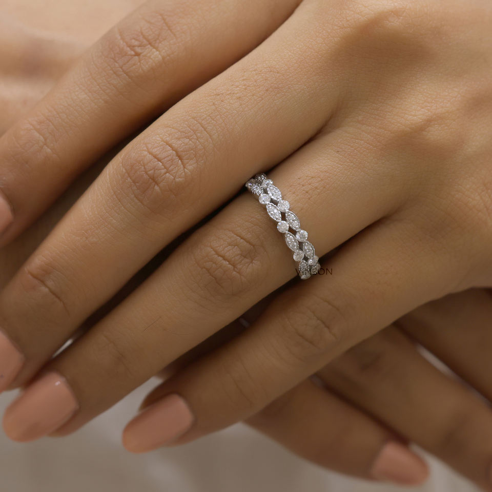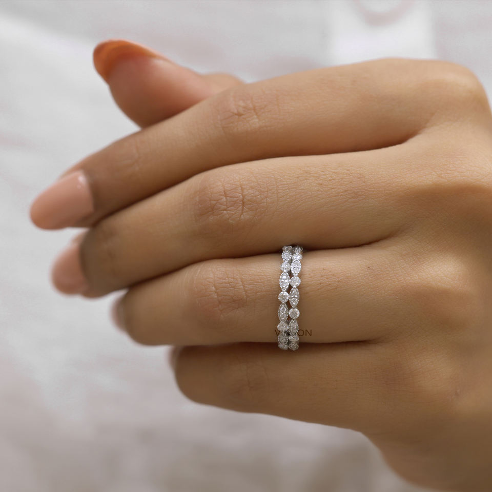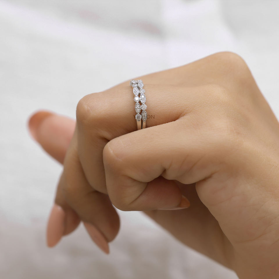 Bande de mariage demi-éternité à double rangée de diamants Moissanite coupe ronde Milgrain-Tapered Pave pour femme en or jaune