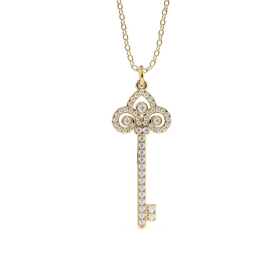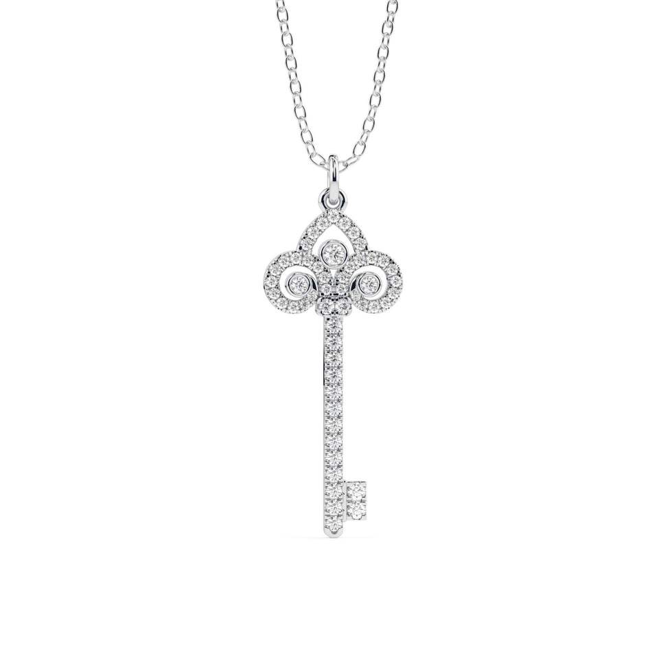 Pendentif en argent en forme de clé avec moissanite taille ronde, mignon, pour femme, idéal pour les fêtes