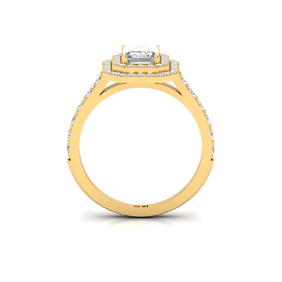 Bague solitaire en diamant de laboratoire taille ronde et taille émeraude, sertie de griffes, plaquée or 10 carats, luxe pour femme
