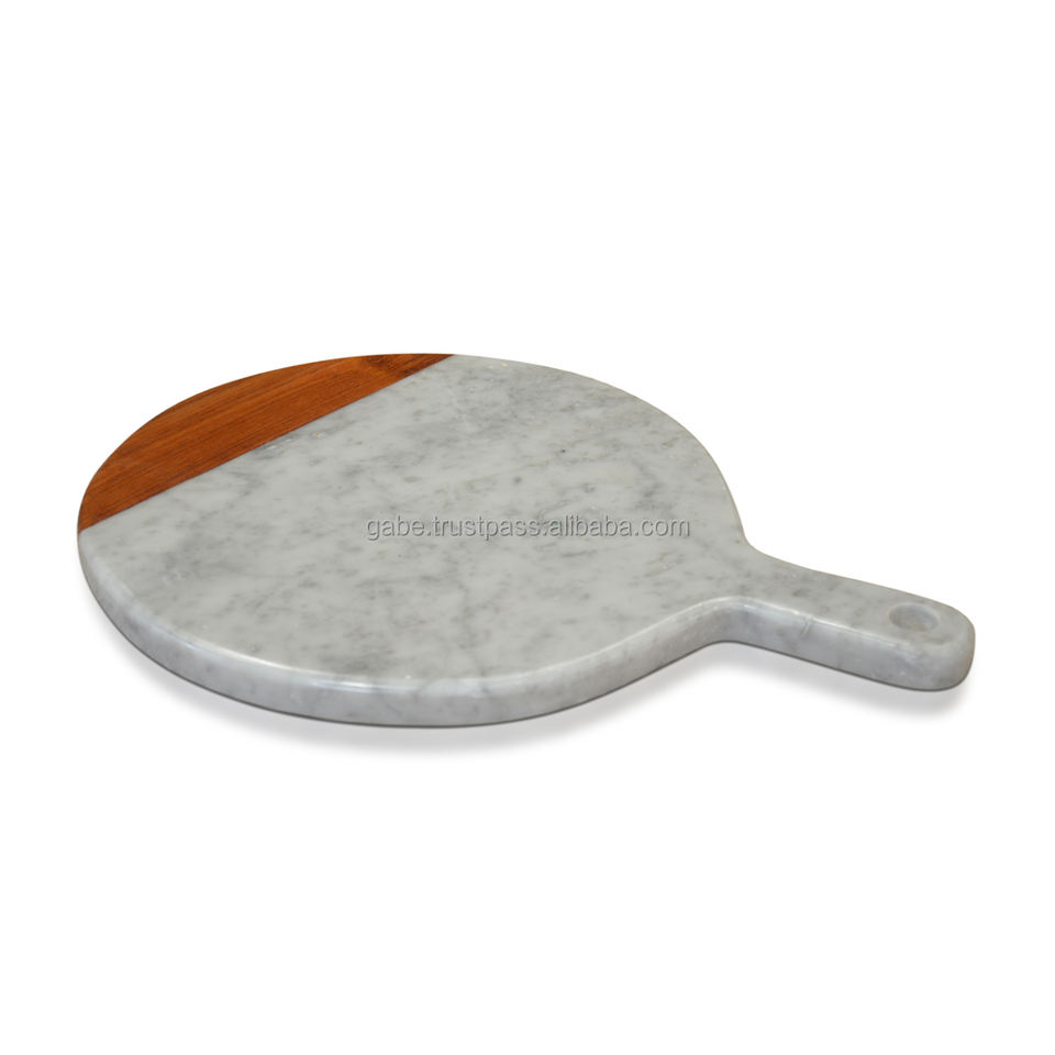 Pagaie de planche à découper ronde en marbre, format en teck 41x30 Cm, 1 pièce