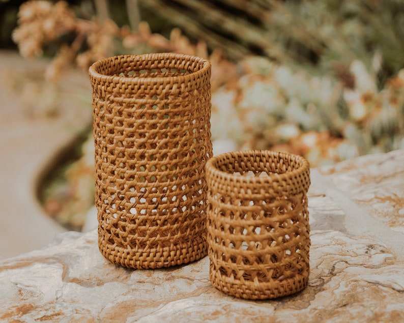 Porte-stylo porte-stylo rond décoratif en rotin tissé panier de rangement belle Art populaire décoration de la maison ou cadeau