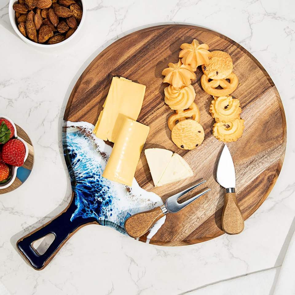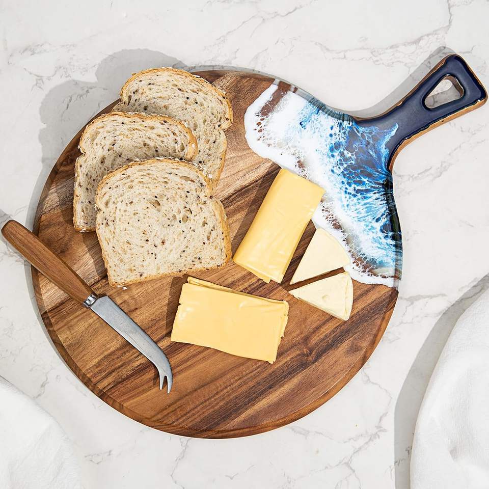 Épicerie fine ronde avec poignée Planche à fromage en bois Planche à découper Planche à découper pour viande Fromage Pain Légumes et Fruits