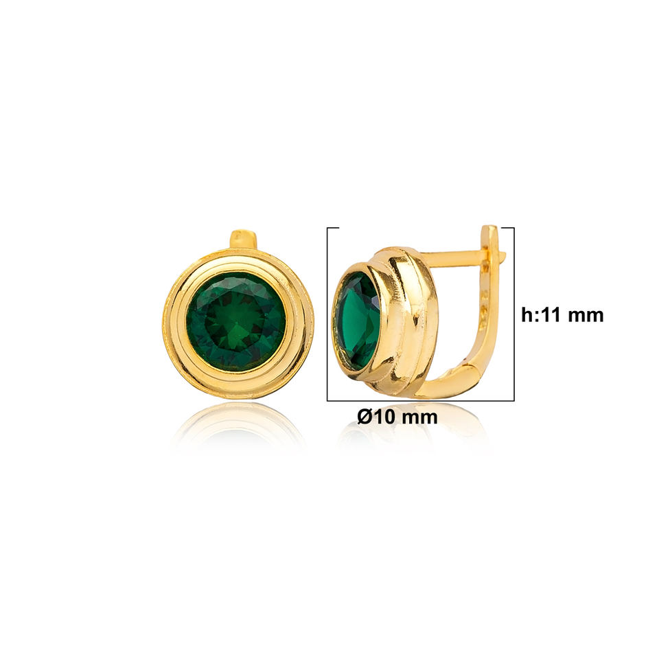 Boucles d'oreilles turques en argent sterling 925 faites à la main en Turquie, design rond, émeraude CZ, vente en gros