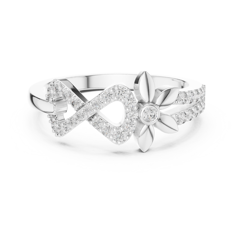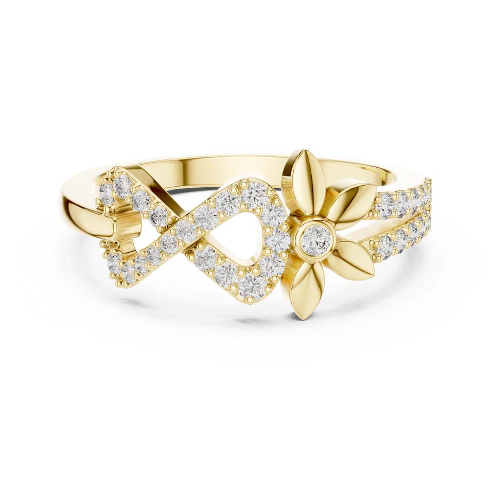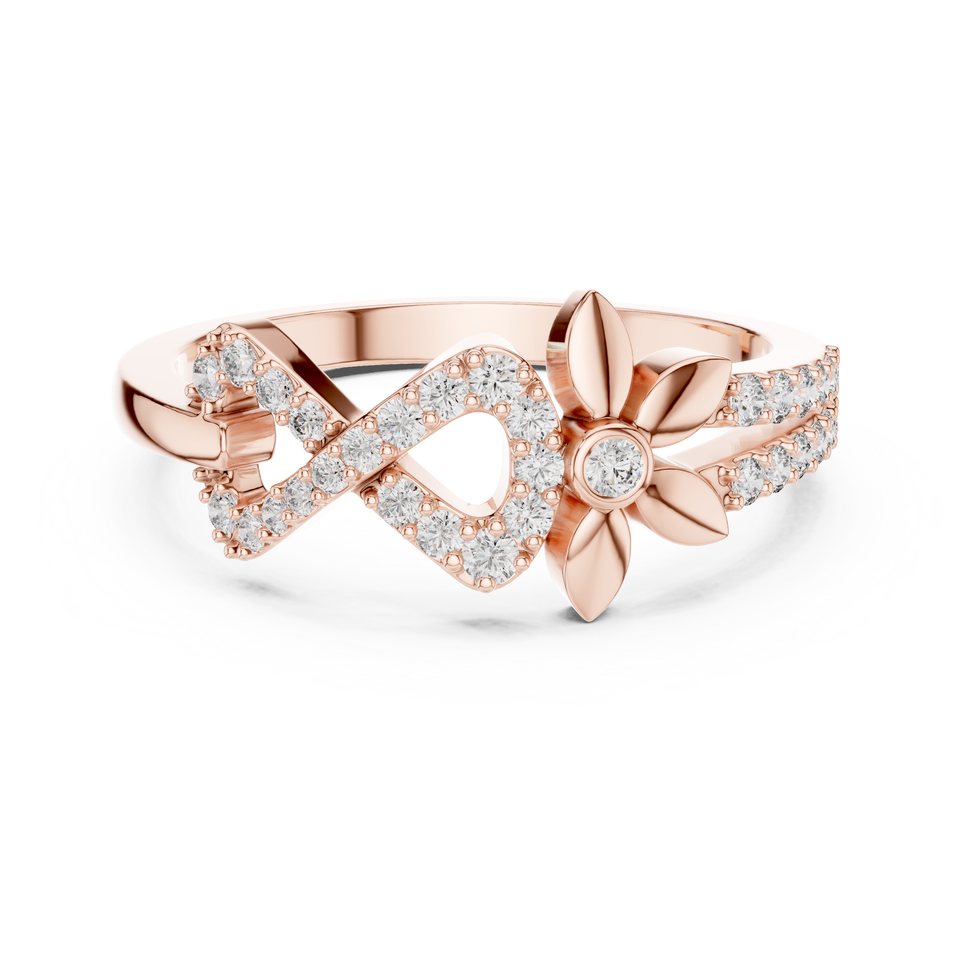 Bague de fiançailles en diamant rond avec motif floral infini | Bijoux de mariée élégants