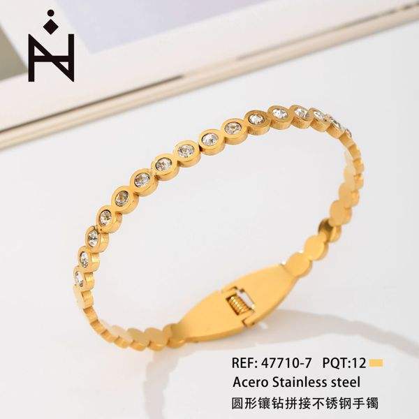 Bracelet jonc en acier inoxydable doré avec diamants ronds, classique pour femme, à porter au quotidien